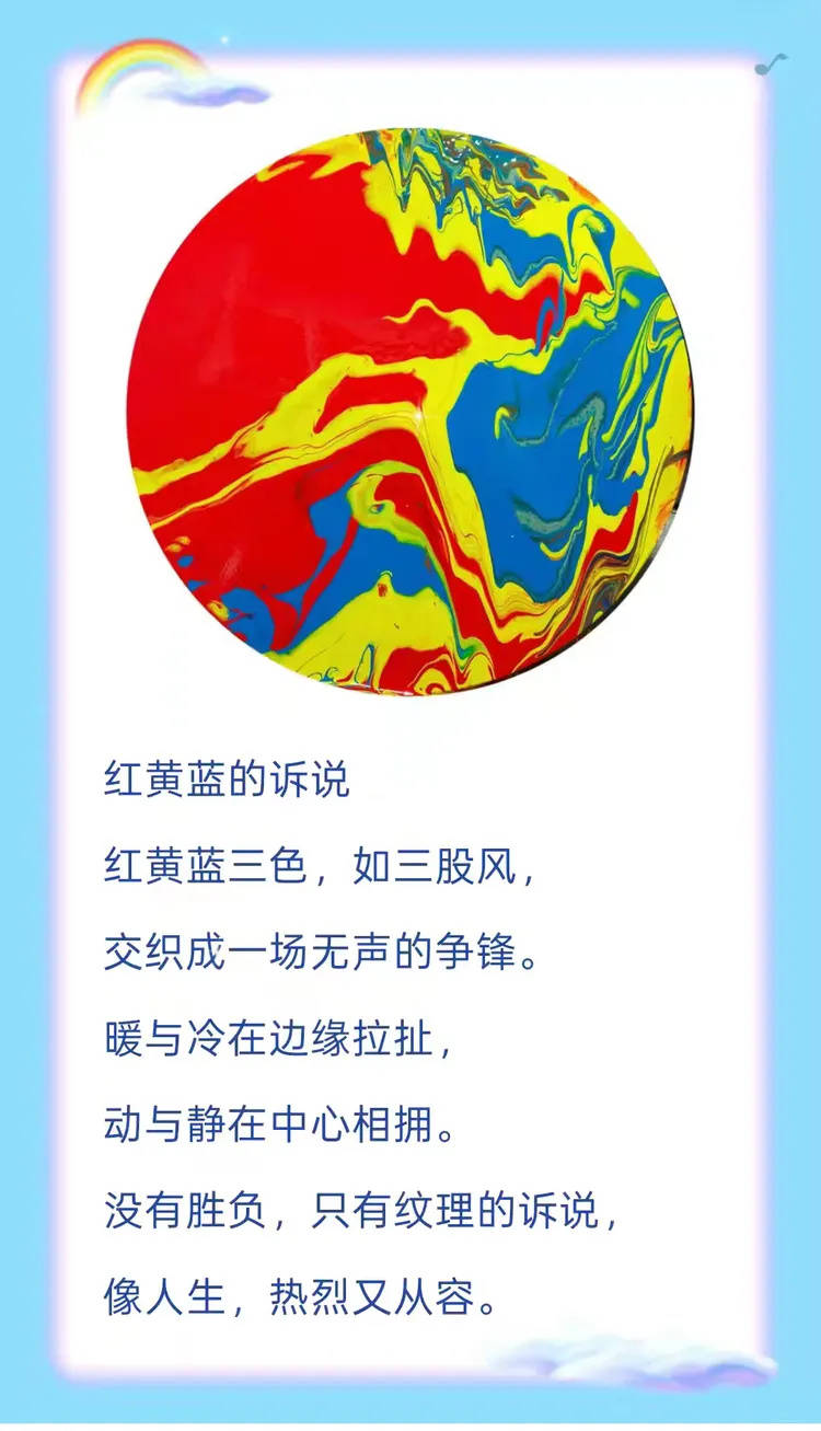 米兰冬奥会的开幕式现场红、黄、蓝与晨嫣曌为米兰奥运万里行在鸟巢北京奥运博物馆成功举办出征仪式上展示的流体抽象画《红黄蓝的诉说》不谋而合。