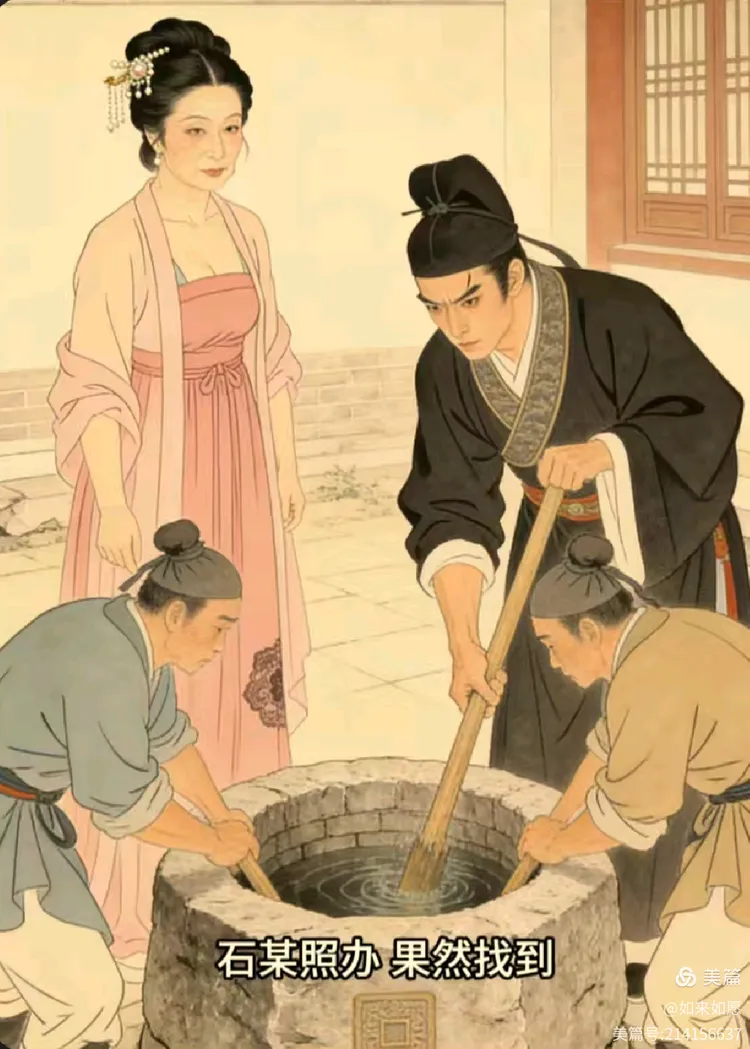 初,妇之未入也,石戒阍人勿通。至此,怒阍人,阴诘让之。阍人固言管钥未发,无入者,不服。石疑之而不敢问妇。两虽言笑,而终非所好也。幸妇娴婉,不争夕。三餐后,掩闼早眠,并不问良人夜宿何所。王初犹自危,见其如此,益敬之。厌旦往朝,如事姑嫜。妇御下宽和有体,而明察若神。一日,石失印绶,合署沸腾,屑屑还往,无所为计。妇笑言:“勿忧,竭井可得。”石从之,果得。叩其故,辄笑不言。隐约间,似知盗者之姓名,然终不肯泄。