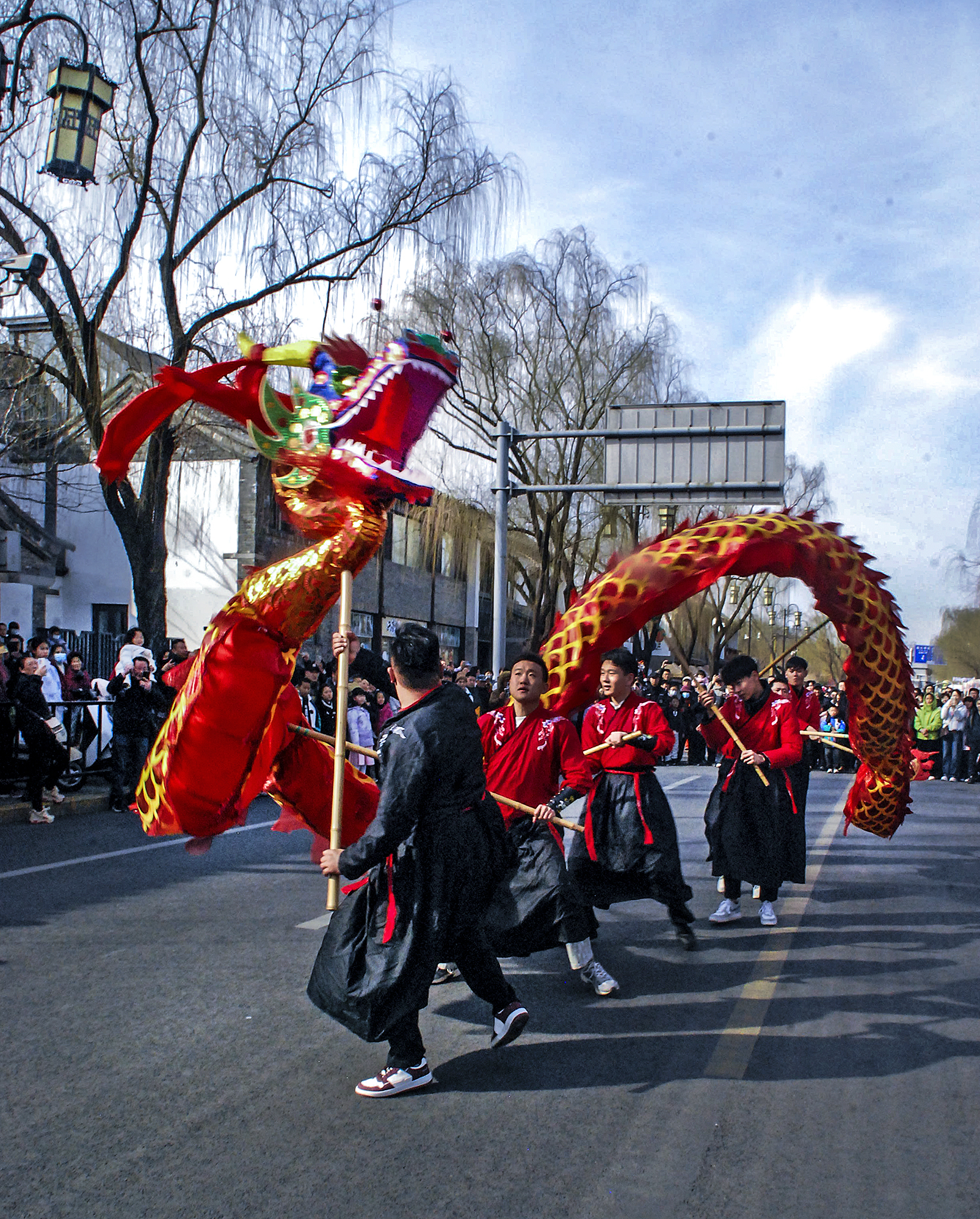 紧接着,泉城社区久负盛名的舞龙表演闪亮登场。一条色彩斑斓的巨龙在舞者们的操控下,如行云流水般舞动起来。巨龙时而昂首腾飞,时而蜿蜒盘旋,恰似真龙现世,龙飞凤舞,气势磅礴。舞龙者们配合默契,动作整齐划一,将龙的威严与灵动展现得淋漓尽致。那翻滚的龙身、闪耀的鳞片,仿佛承载着中华民族的传统文化,在新春佳节的天空中翱翔。