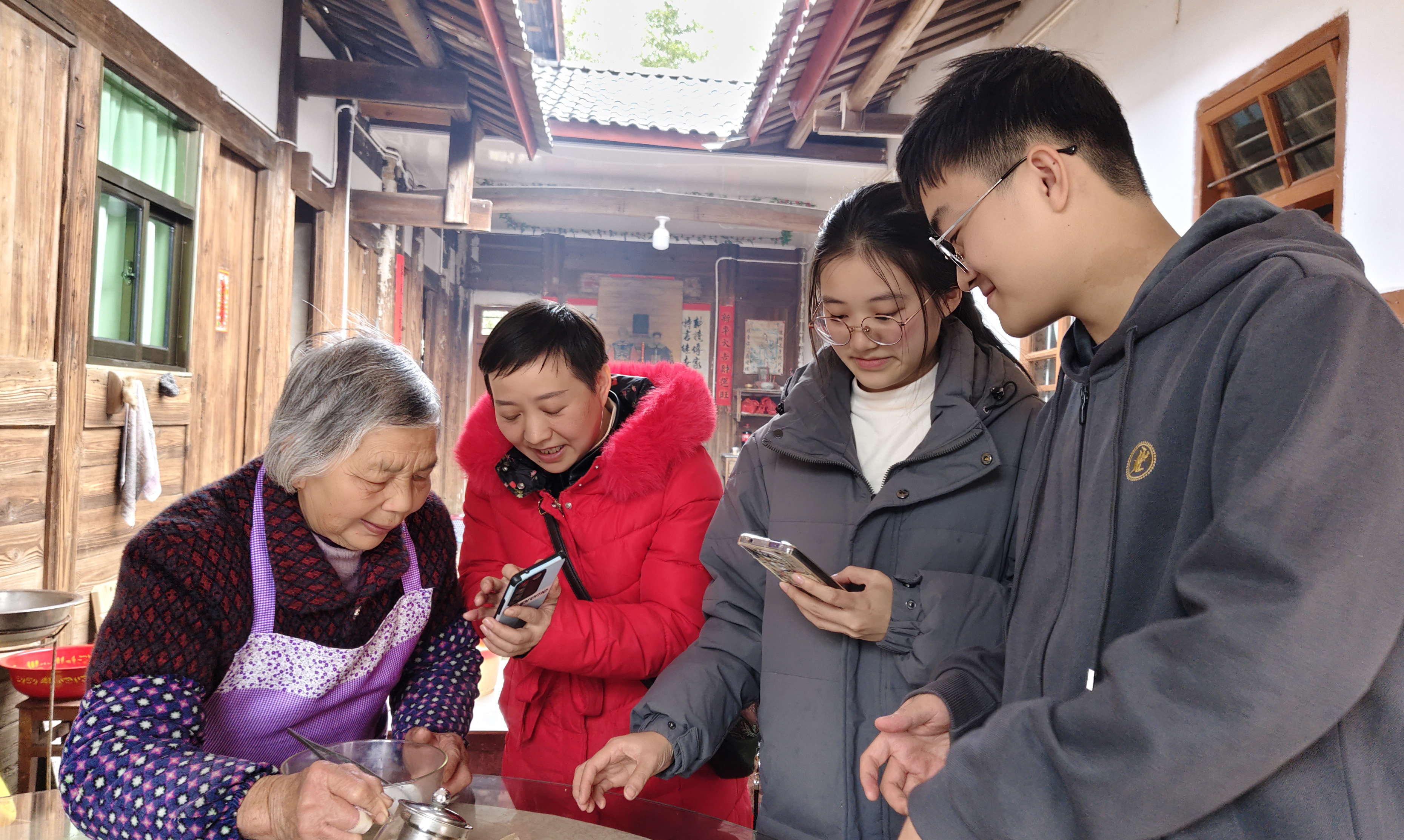 一行人首先来到朋口明德公园,一边观赏九龙壁赏石文化,一边走访文坊乡村文化会客厅,实地感受红色文化与乡村文化建设融合发展的生动成果,在沉浸式体验中感悟初心使命、汲取奋进力量,为孩子们讲述当年红色教育背后的故事。