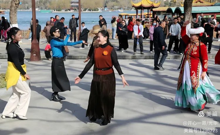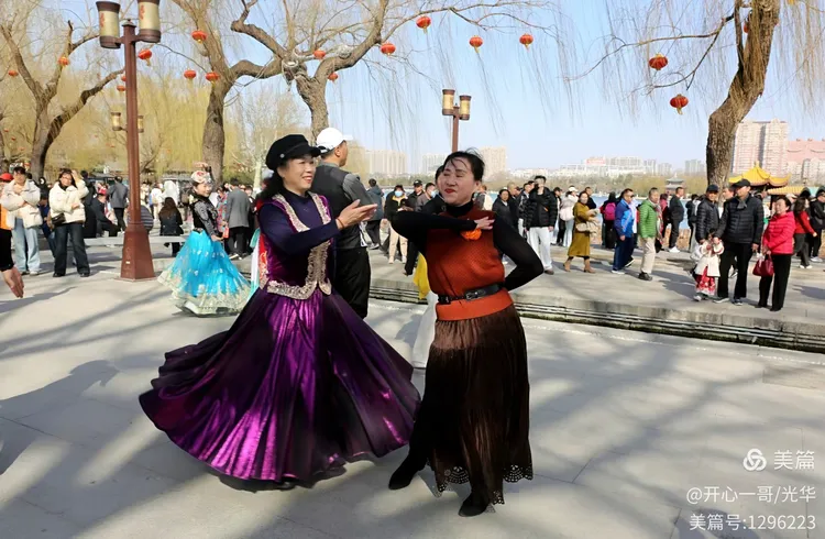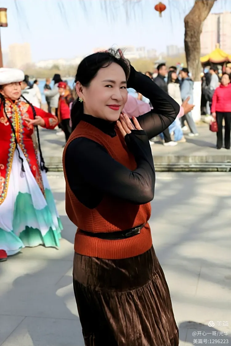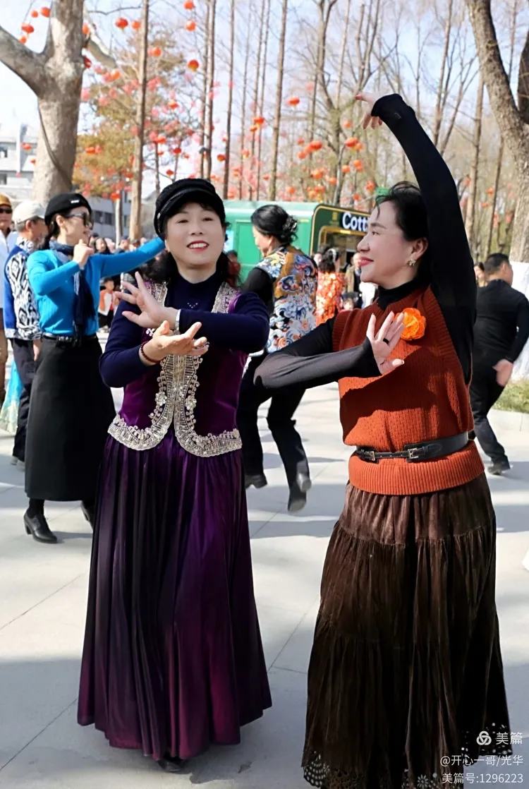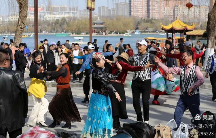 位于大明湖正门西侧的开阔地带,一群对新疆舞蹈充满热情的中老年爱好者正翩翩起舞,我偶遇了久违的夏雨朋友。谈及新疆舞,她无疑是其中的佼佼者。她那眼神流转、舞姿曼妙,无不令人击节赞叹。不禁让我想起了跳新疆舞网络红的“眼神妹”,相比之下,夏雨的风采更显飒爽,毫不逊色。我趁机为夏雨和她的舞伴们捕捉了这些珍贵的瞬间,无论是跳舞的,还是合影照,都定格了这份热烈欢腾、热闹非凡的氛围。
