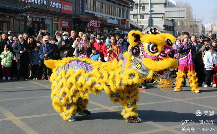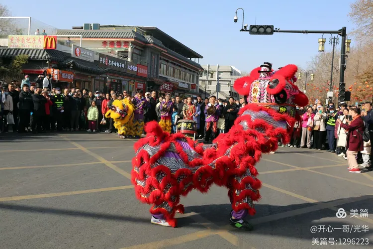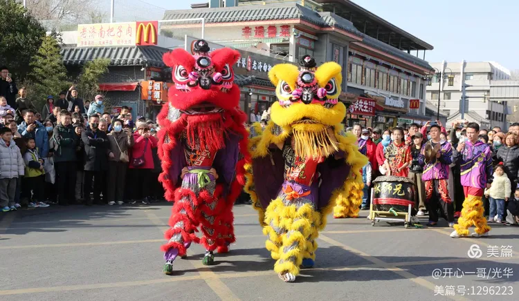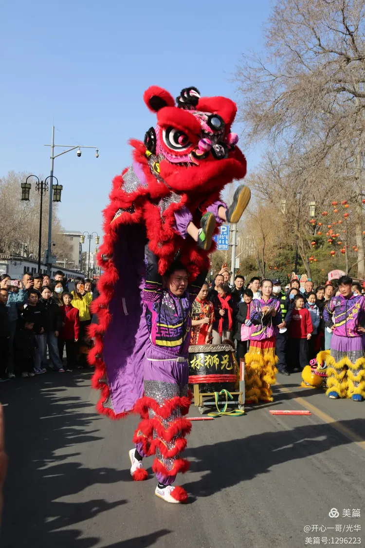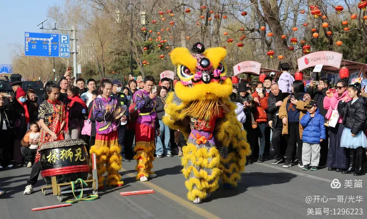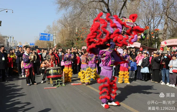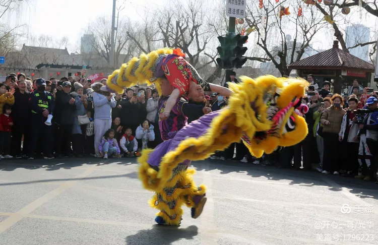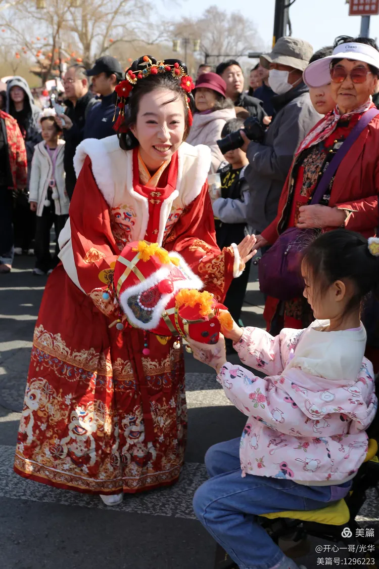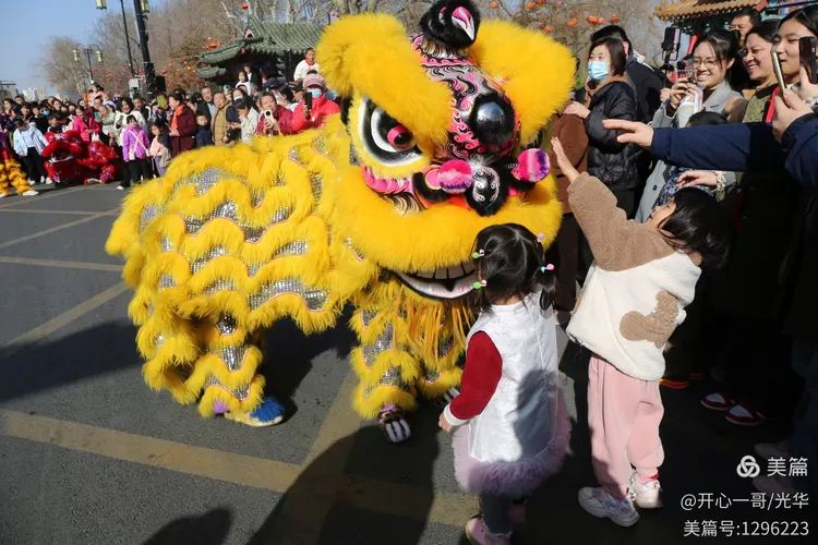 在熙熙攘攘的市集之中,除了目不暇接的各式商品,一系列精彩绝伦的民俗主题表演活动轮番登场,不断将现场氛围推向一波又一波的高潮。在大明湖正门与文庙前,接连进行了两场精彩舞狮表演。演员们那翻腾跳跃的精湛技艺,引来了阵阵掌声。更令人心动的是,舞狮来到场边与观众互动,不少孩子们争先恐后地伸手触摸舞狮的大眼睛,满场的欢声笑语中洋溢着浓浓的福气与喜庆。