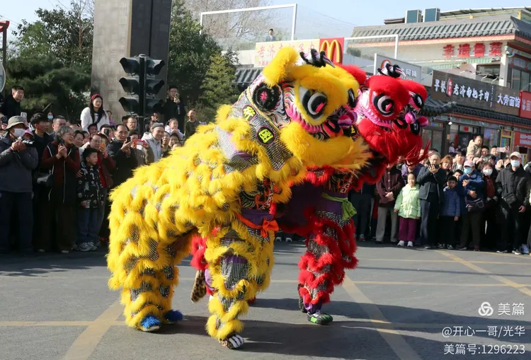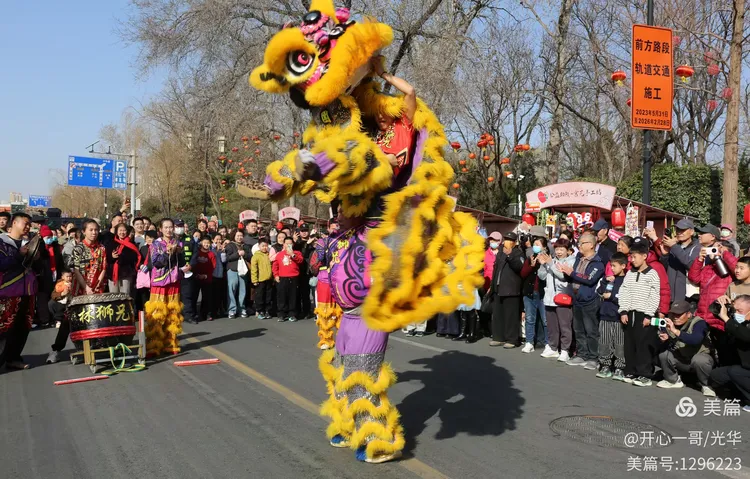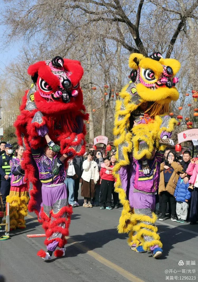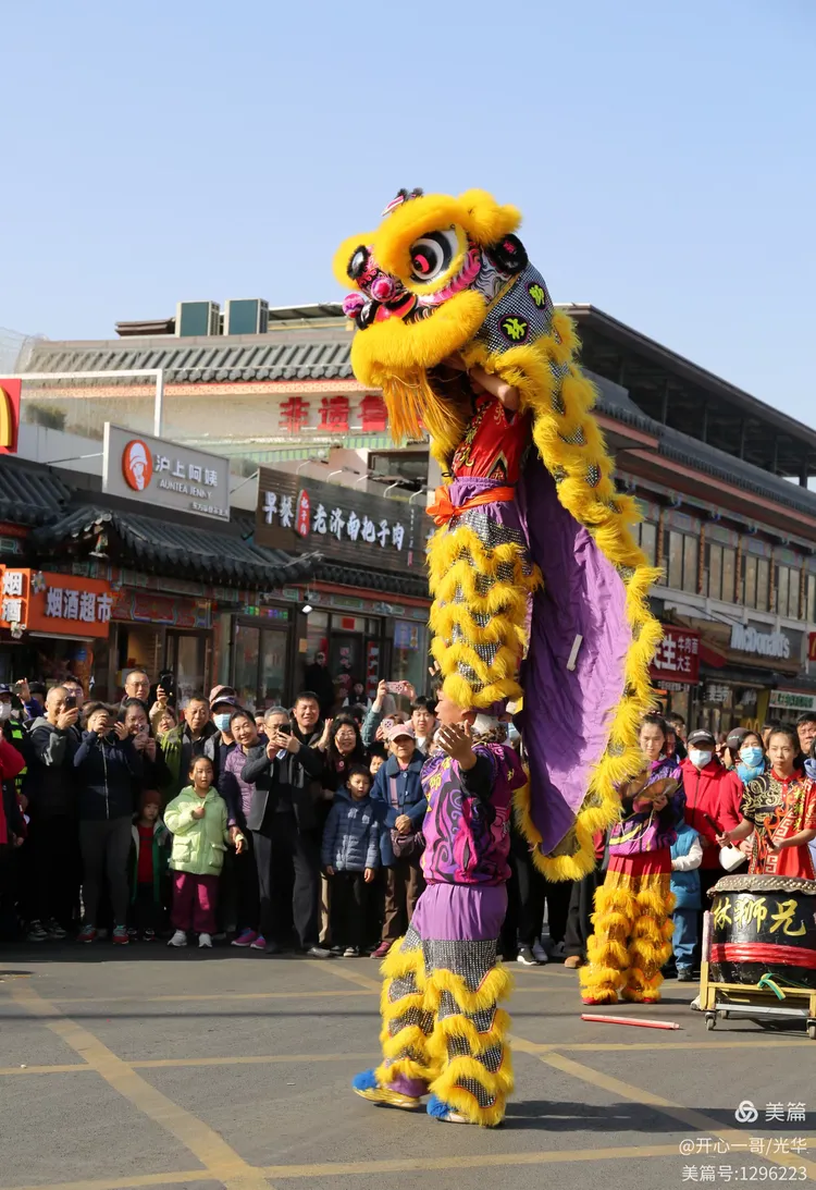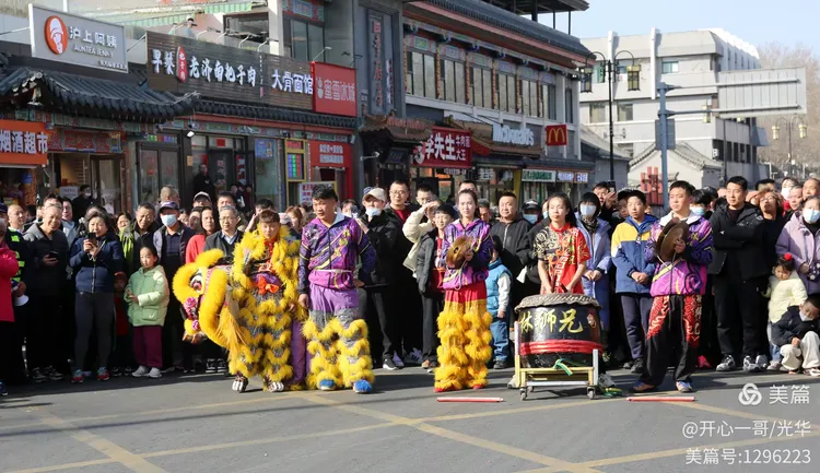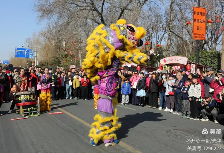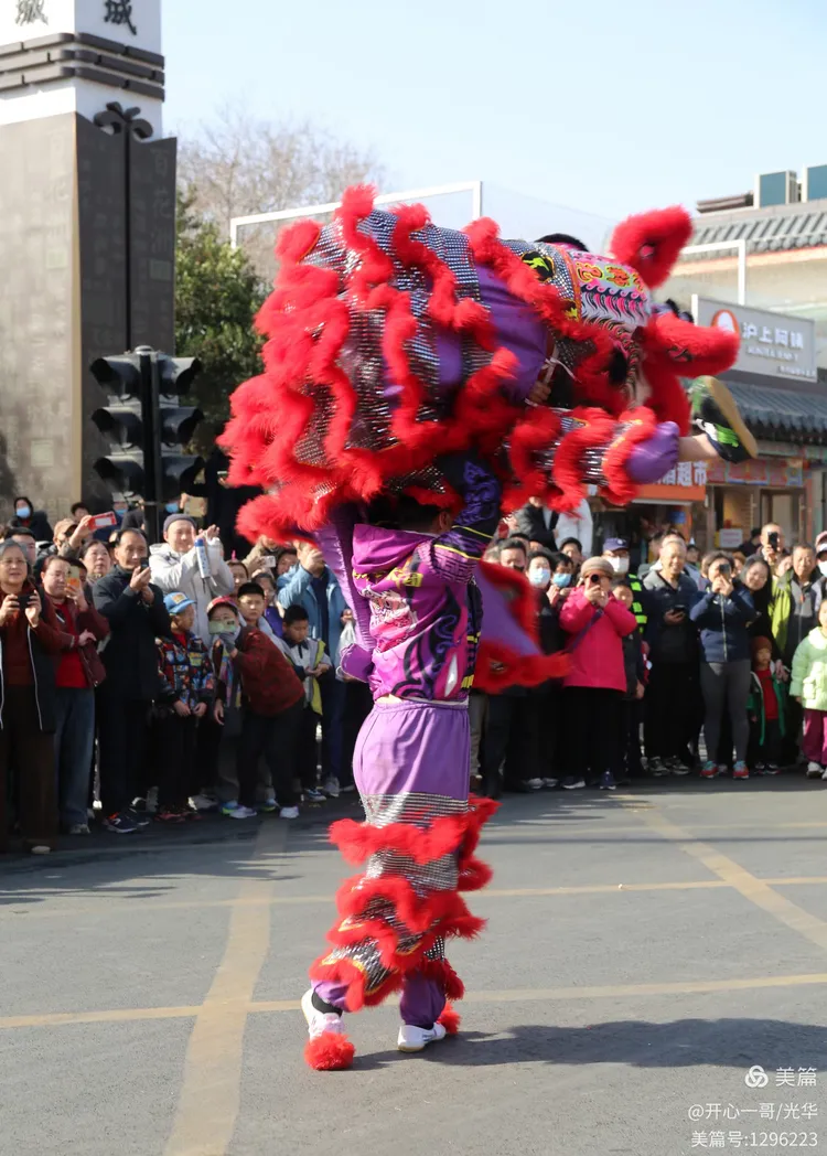 在熙熙攘攘的市集之中,除了目不暇接的各式商品,一系列精彩绝伦的民俗主题表演活动轮番登场,不断将现场氛围推向一波又一波的高潮。在大明湖正门与文庙前,接连进行了两场精彩舞狮表演。演员们那翻腾跳跃的精湛技艺,引来了阵阵掌声。更令人心动的是,舞狮来到场边与观众互动,不少孩子们争先恐后地伸手触摸舞狮的大眼睛,满场的欢声笑语中洋溢着浓浓的福气与喜庆。