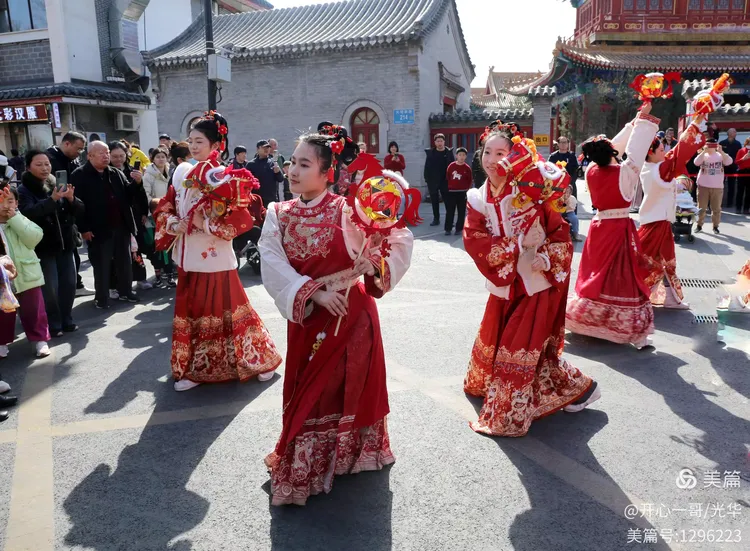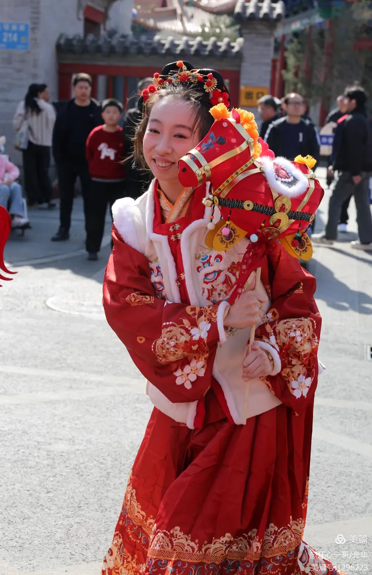 最后在文庙前,一场别具特色的民俗表演开始了。十位身着鲜艳红衣的小姑娘,手持精致的小马道具,以轻盈曼妙的舞姿,翩翩起舞迎接新年的到来。整个表演洋溢着丙午新春的热烈与吉祥,为节日增添了无限的喜庆氛围。