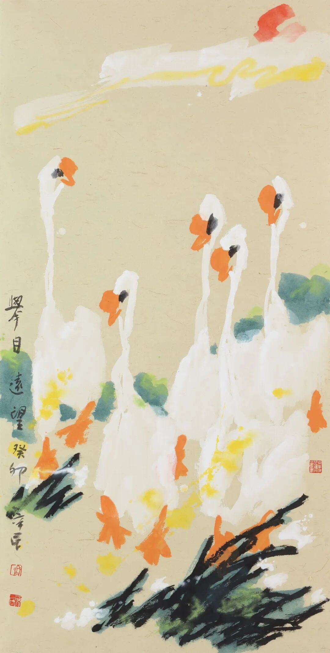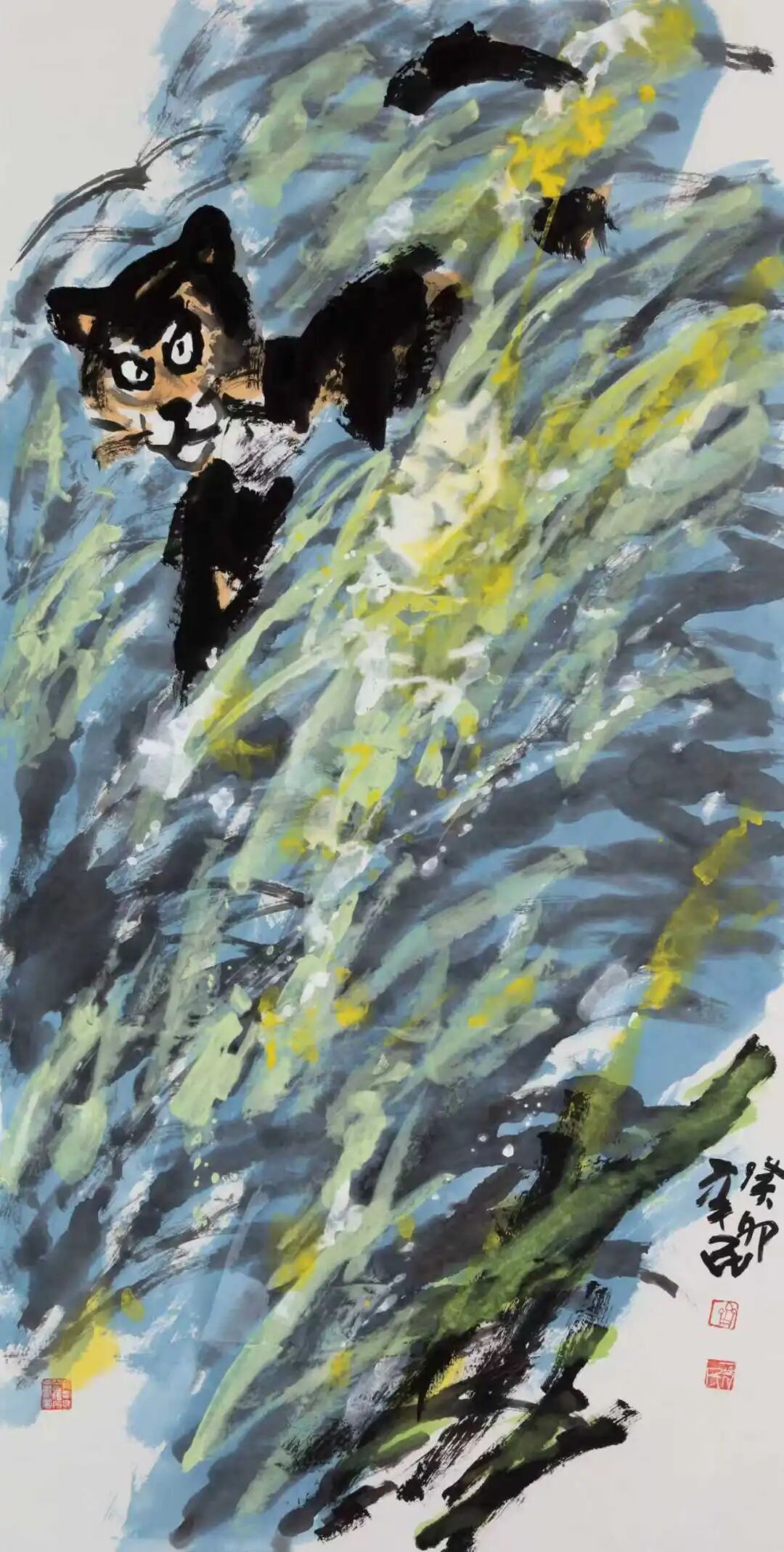 齐辛民,原名齐新民,1935年生于山东淄博。1963年毕业于山东艺专(今山东艺术学院),现定居北京。中国美术家协会会员,中央美术学院客座教授,清华大学中国画高研班导师,齐白石纪念玉树顾问,淄博画院名誉院长、美协名誉主席,国家一级美术师,艺术家、教育家。 艺术创作从人物、年画、剪纸入手,以写意花鸟画名世,构思巧妙,文人情怀,胆大创新,中西结合,墨色浓重,热烈而奔放,雅致具哲思,多富乡间情趣,并具现代意识。作品多次入选全国美展,《朝晖》获中国美协主办的首届中国花鸟画展最高奖,《醉秋图》入选全国首届中国画展,并入编人民美术出版社出版的《中国美术全集》;出版人民美术出版社出版的《中国近现代名家*齐辛民》、《中国美术家大系·齐辛民》、中国当代美术家系列研究《艺道天成》、河北教育出版社出版发行《画中的三笔》、荣宝斋出版社出版发行《荣宝斋画谱.动物.花鸟》两卷及三十余本画册和研究书籍出版发行。其艺术成就在央视"收藏天下"栏目、老故事频道“传承与开拓”栏目、书画频道、歌华有线电视“拾箴美术馆”栏目等全国十多家电视台、和几十家重点学术权威报刊做专题专访介绍;2017年书画频道《一日一画》大型十五集教学片拍摄录制完成并播出;2020年歌华有线电视美育课堂讲二十课大写意花鸟画、和录制十集艺术人生专题片滚动播出,近年,在京、广、深、浙江、山东等各地举办全国巡展,作品被中国美术馆、浙江美术馆、山东美术馆、天津博物馆等收藏。作品鉴赏: