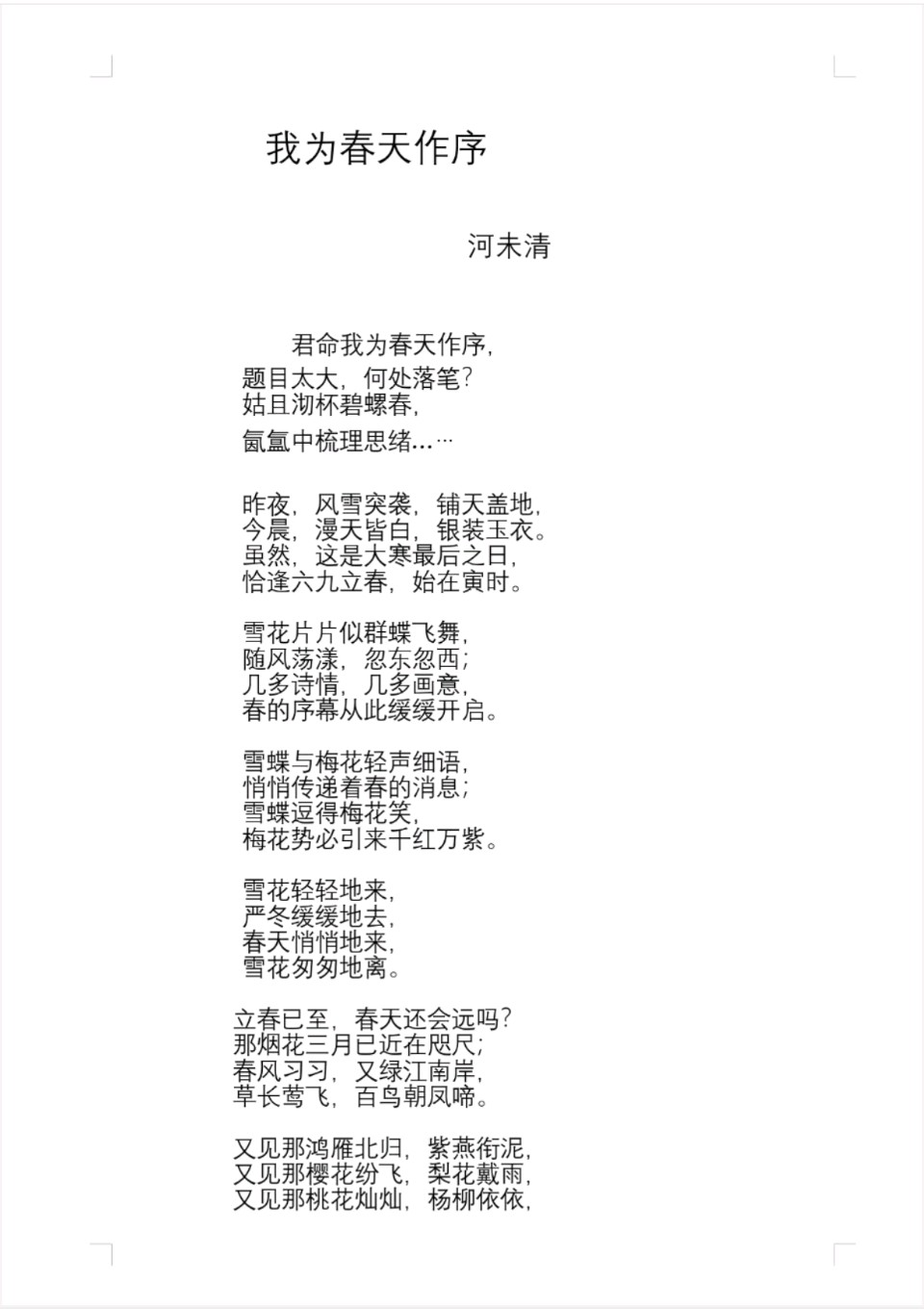 【云之声播音电台】追月主播海沬清的原创作品《我为春天作序》
