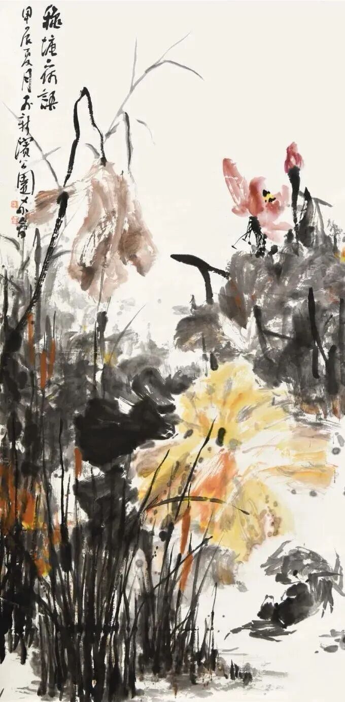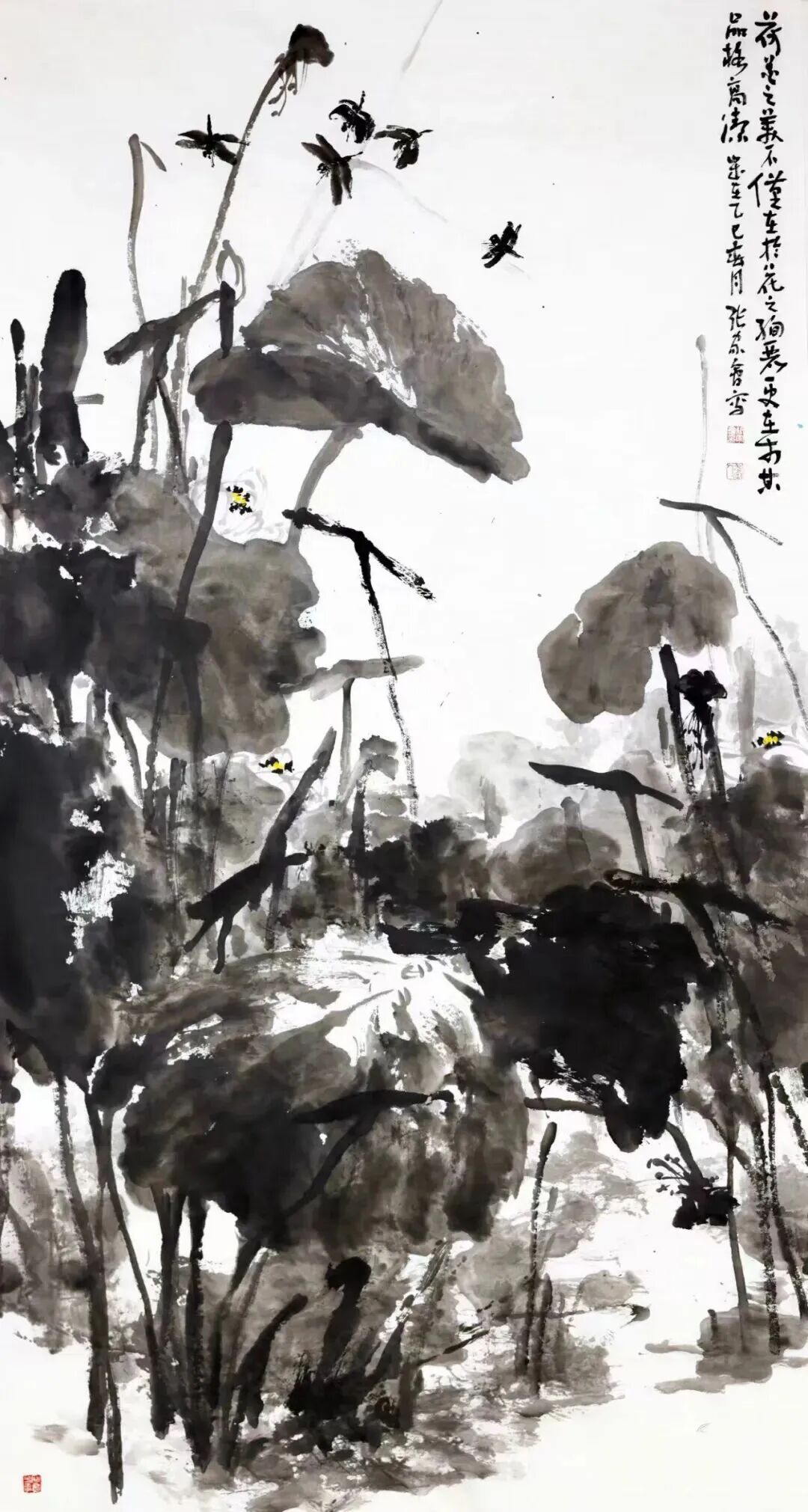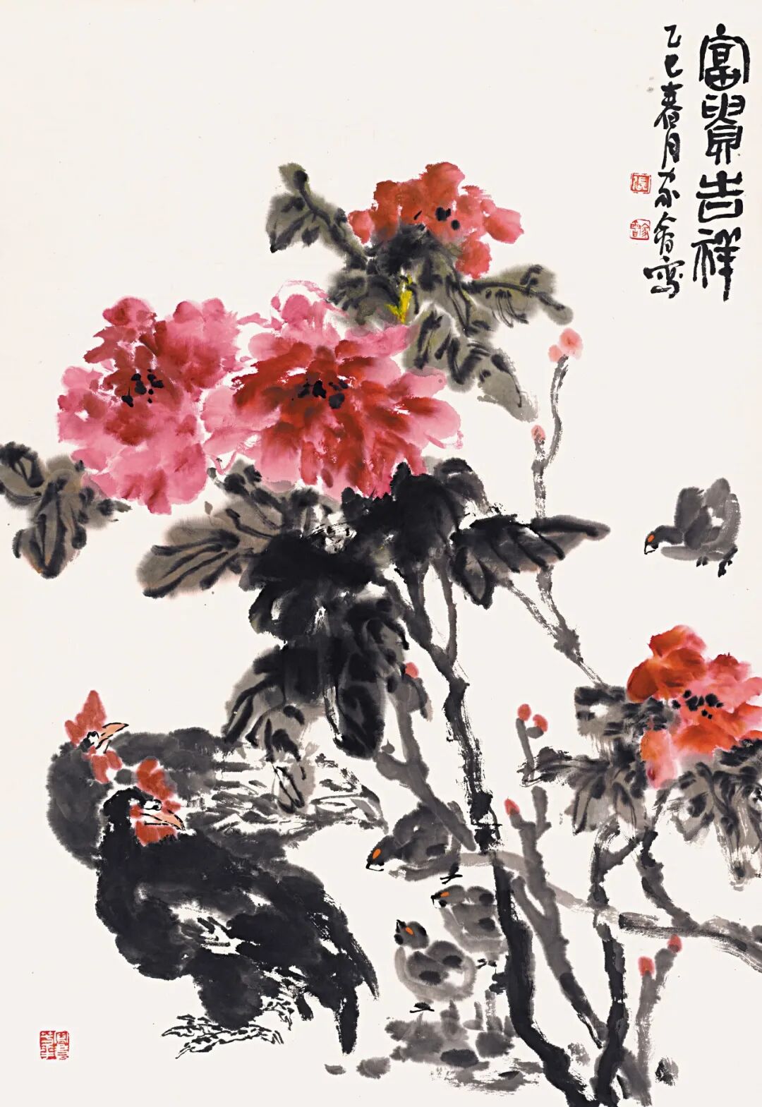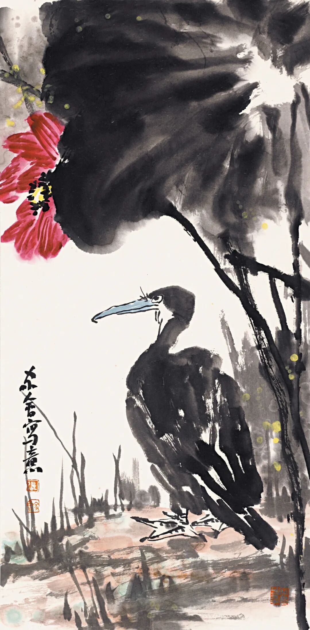其又兼具了造像塑形和寓意明鉴之功效,其形态是一种介于具象与抽象之间、可被描述的模糊状态。正是这种笔墨形态与意象符号的生成转化,使家会先生写意花鸟画有了丰富的表现力、概括力和寓意性。其“笔墨”形态是刚柔相济,跌宕多姿,气势中有节奏,浓淡里见色泽。