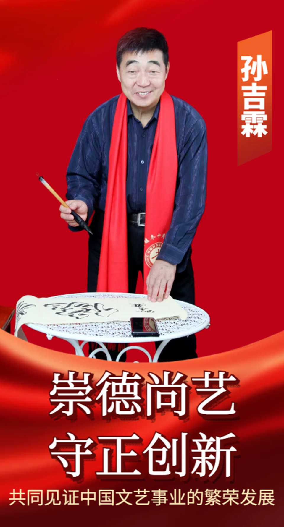 孙吉霖,中共党员,大学学历。笔名神鹿山人、中华一笔成,霖宝斋斋主。