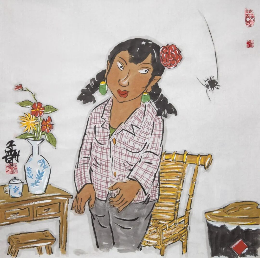 闲士观虫图