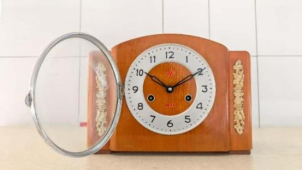 两件捐赠藏品皆镌刻着家族岁月痕迹,承载着三代人的情感寄托。家传实木箱子是吴女士父亲在闯关东时置办,后在冶金部工作期间使用,后期为吴女士祖母专用,2021年吴女士接手,完成了祖孙三代的传承。它留存着一家人的记忆乡愁,见证了数十载家庭变迁与团圆时光;三五牌台钟产自上海中国钟厂,采用独特“活摆”结构,造型简洁、工艺精湛,既是上世纪民生生活的代表性物证,也凝聚着吴家人对时光的珍视与对生活的热爱。为让藏品得到更好保护与展示,吴隆英夫妇驱车千里奔赴淄博,这份执着与热忱令人动容。