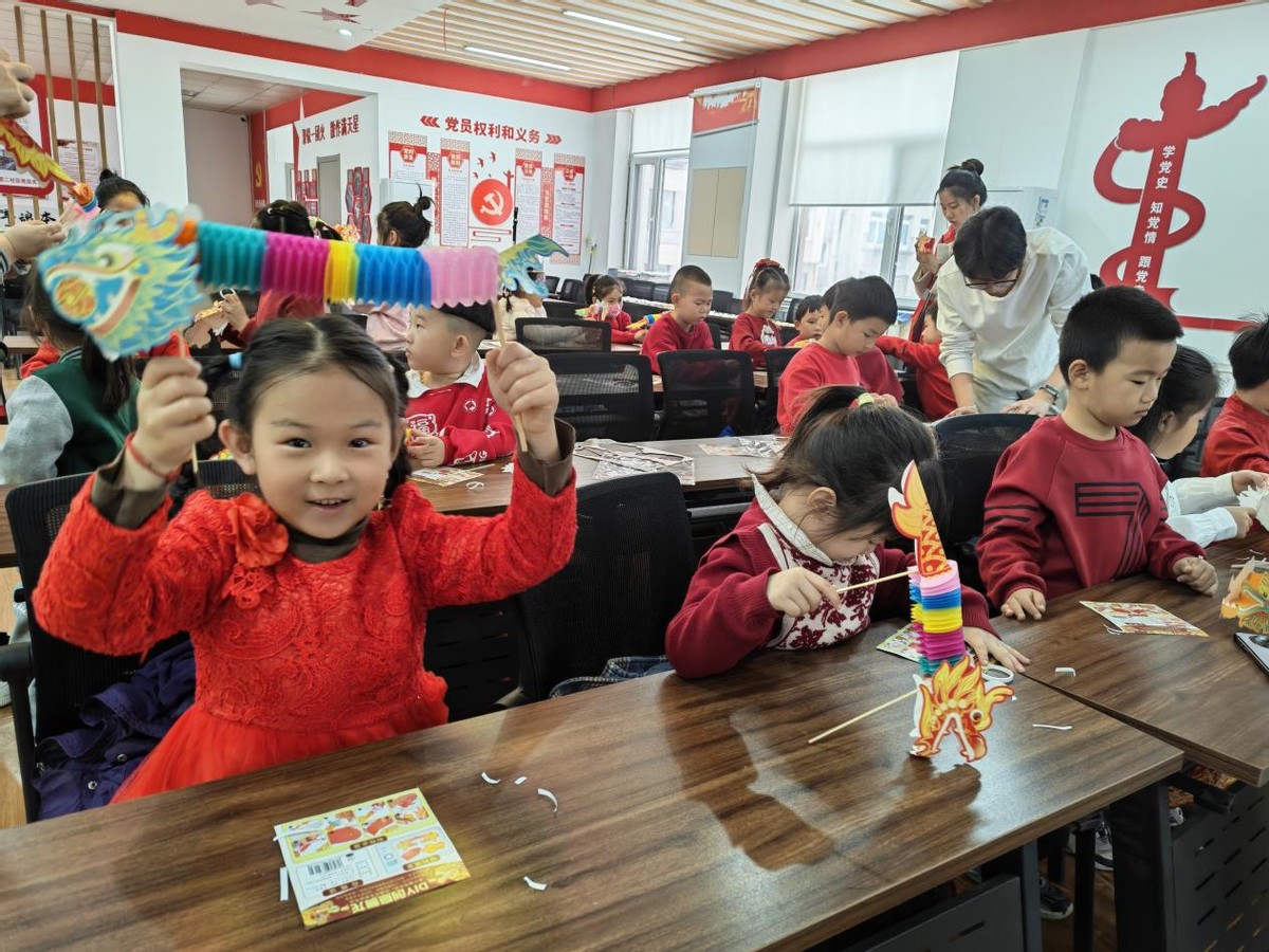 手工制作环节是本次活动的重头戏。在“拉龙花”手工创作中,孩子们化身“小小巧手匠”,用五颜六色的皱纹纸、彩带等材料,通过拉、折、粘贴等手法,制作出一条条栩栩如生的“小龙花”。有的孩子为龙花添上了闪亮的龙珠,有的用彩笔描绘出威风凛凛的龙头,每一件作品都充满了童真与创意。当孩子们举起自己制作的“龙花”在阳光下展示时,一张张笑脸与手中的“小龙”相映成趣,构成了一幅充满生机的春日画卷。