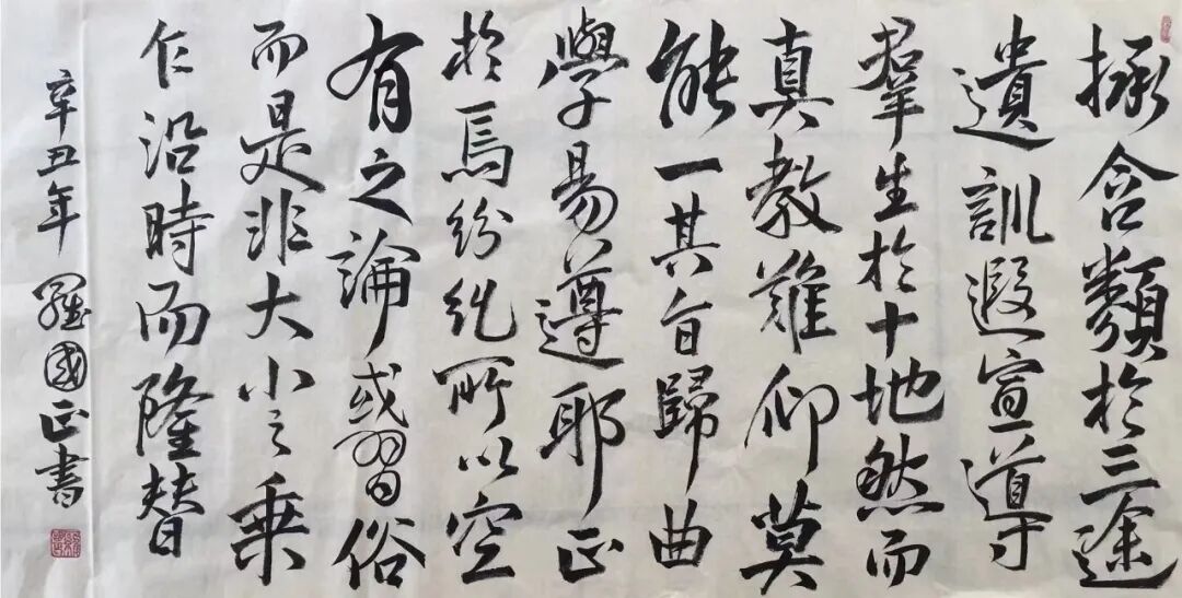罗国正先生在哲学、美学和谋略学上的突出贡献:首先提出了感悟主义的概念,并将它定义,同时建立了感悟主义的理论体系及心法体系;他发现了“生命在宇审中的发展规律、人类生命的发展规律及人类活动四条主要的规律和其它规律,首先提出和论证了九维时空、二十七维时空、四十二维时空的概念、观点和理论;他为“美”下出了准确的定义:美是有生趣的感觉。他认为:美是客观与主观、物质与精神、唯物与唯心、具象与抽象、个别性与特殊性、普遍性等的辩证统一。他主张并首先提出,从美学的角度来划分人类社会发展共分为八个阶段。他还提出了大量的新概念并定义,如:“人-机合一的天人合一主义”等等。同时他也为很多已有的概念进行了重新的科学定义。他在谋略学方面的主要贡献是:发明、设计了《计策元素表》,还根据从现代主义发生到当今的理论、实践成果,尤其是企业的营销经验,总结出一部分计策。在古典主义的很多条计策中,他也用新的哲学、美学、军事科学、企业经营理论作出新解释。罗国正先生在书画艺术上的突出贡献:创立了顿悟书画艺术,并提出了顿悟书画艺术创作的系列理念,探索出很多进行书画创作的技法,产生了大量被世人公认和喜爱的作品。创办了世界上第一个“顿悟文化书画家协会”,招收了第一批顿悟书画家学员和会员,举办了“人类史上第一次顿悟书画艺术大展”(此展览,罗国正先生的作品超过三千幅),结束了只有渐悟的书画艺术一统世界的历史,开创了渐悟艺术与顿悟艺术并存的历史新纪元。顿悟书画艺术的内涵非常丰富,它包括有孔雀毛书法体系、水瓜壳画派、椰棕笔书画技法等,以及大排笔山水、人物速写等等技法。其中一笔出“龙”、一笔成“马”、一笔画“牛”、一笔一个五彩斑斓的“跳舞少女”等等,特别引人注目,多家电视台、报刊、互联网等新闻媒体也作过详细、连续的报道。罗国正先生至今已创作出六万多幅书画作品,从联合国、到一带一路,从国王、到多国政要、军界将领、工商界人物、多个世界拳王、知名人士、演艺界人物等等,以至一般老百姓,都有大量收藏他的作品。中国多个国家级部门联合为他专门出版了多本大型纪念邮册,将他的多个头像照及很多的书画作品,制作成可以通邮的邮票,还有一些则作为邮品、邮册来出版。从2006年开始至今,陆续被国家多个部门授予“国礼艺术家”、“人民最喜爱的艺术家”、“新时代艺术领军人物”、“中国当代艺术功勋人物”等称号,他的书画作品享有“国家名片”的美誉。