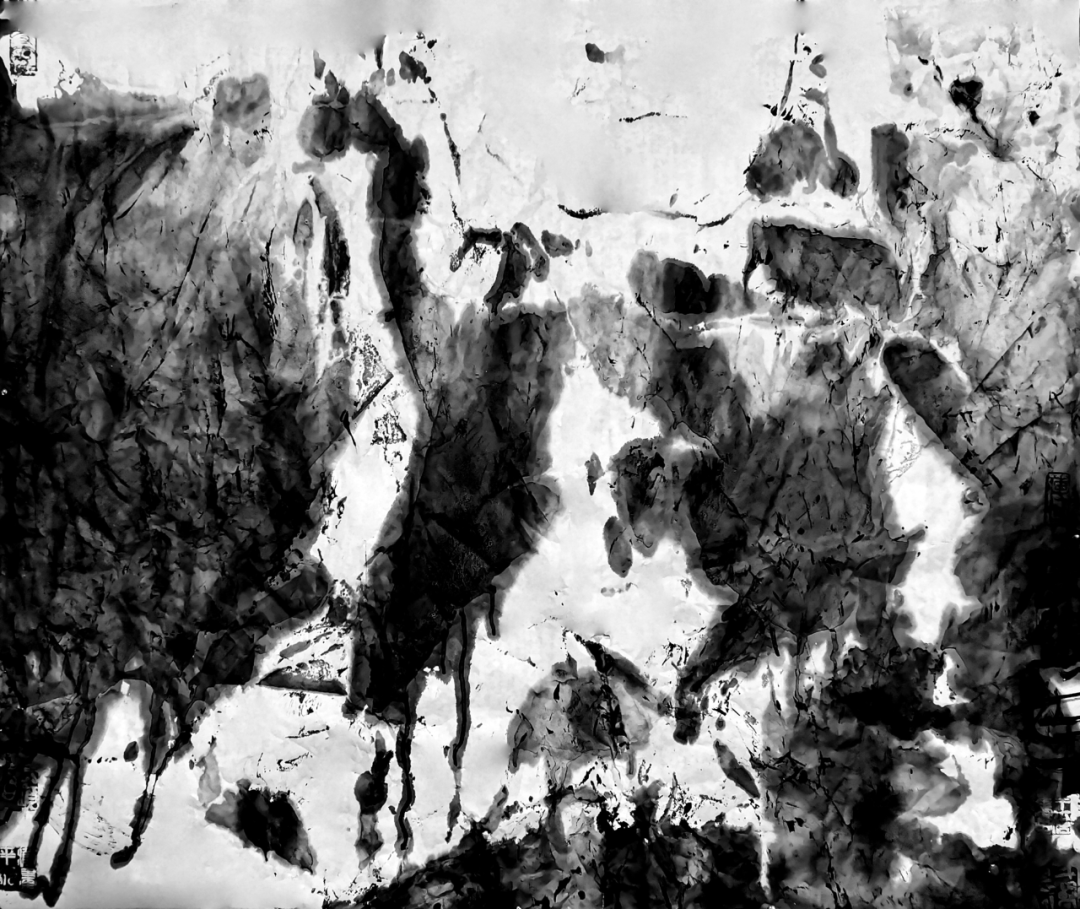 三、异变期:不断地求索变化,来掌握水墨创作的实验总结:对材料工具的研究和自身体会。需要15年时间。