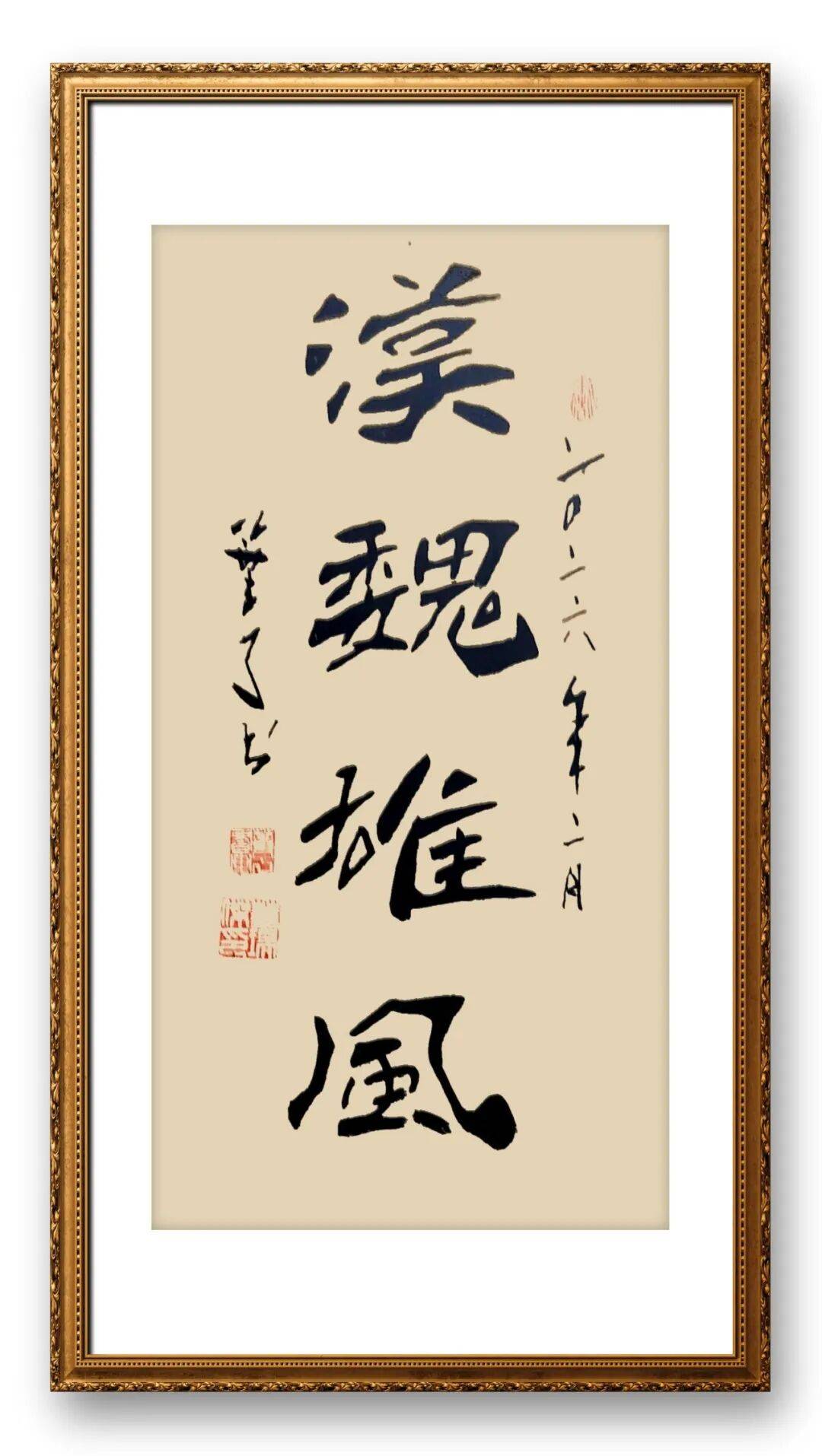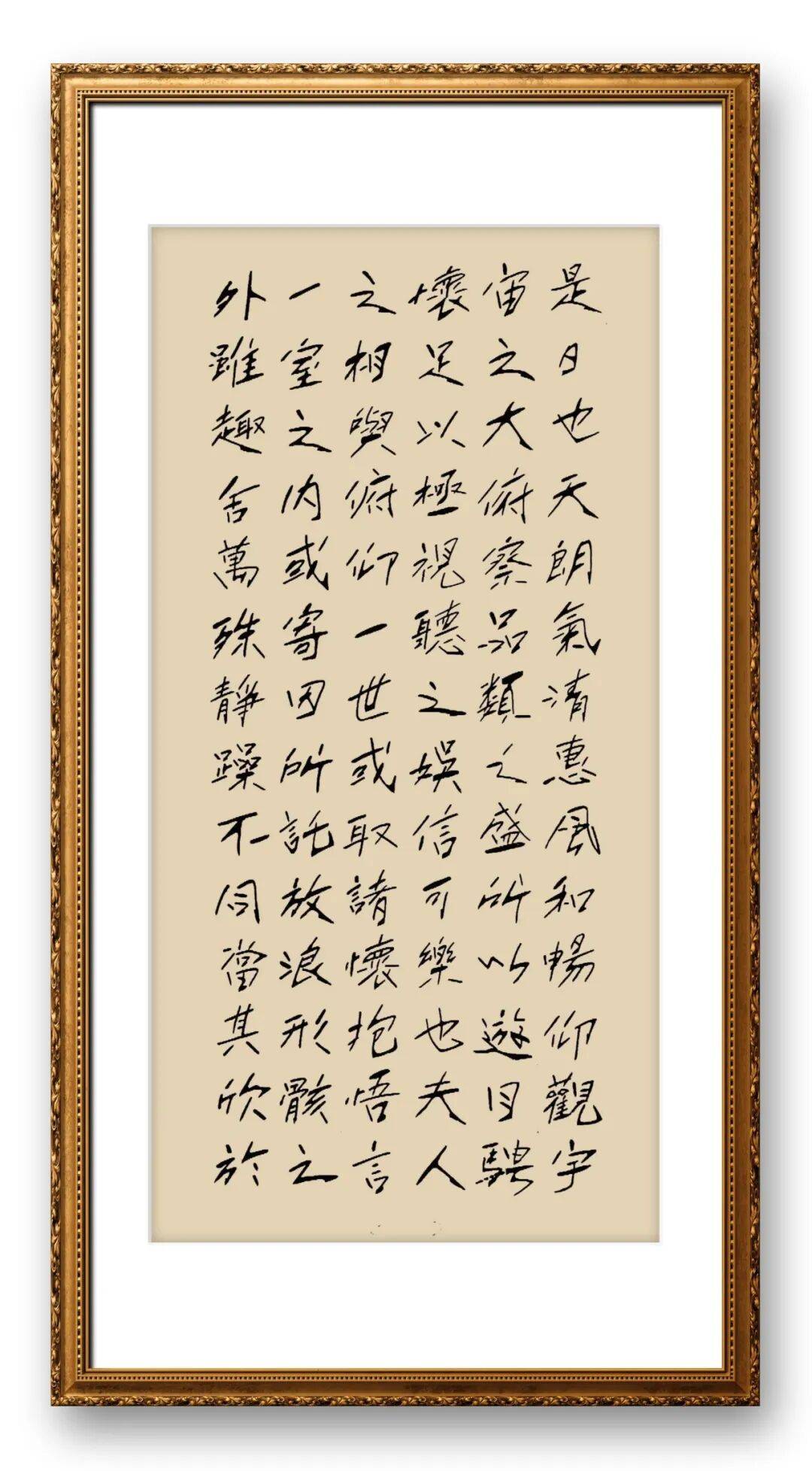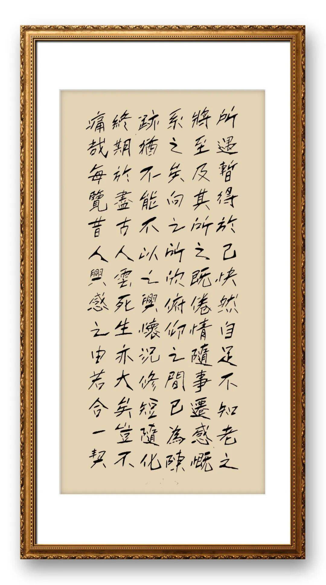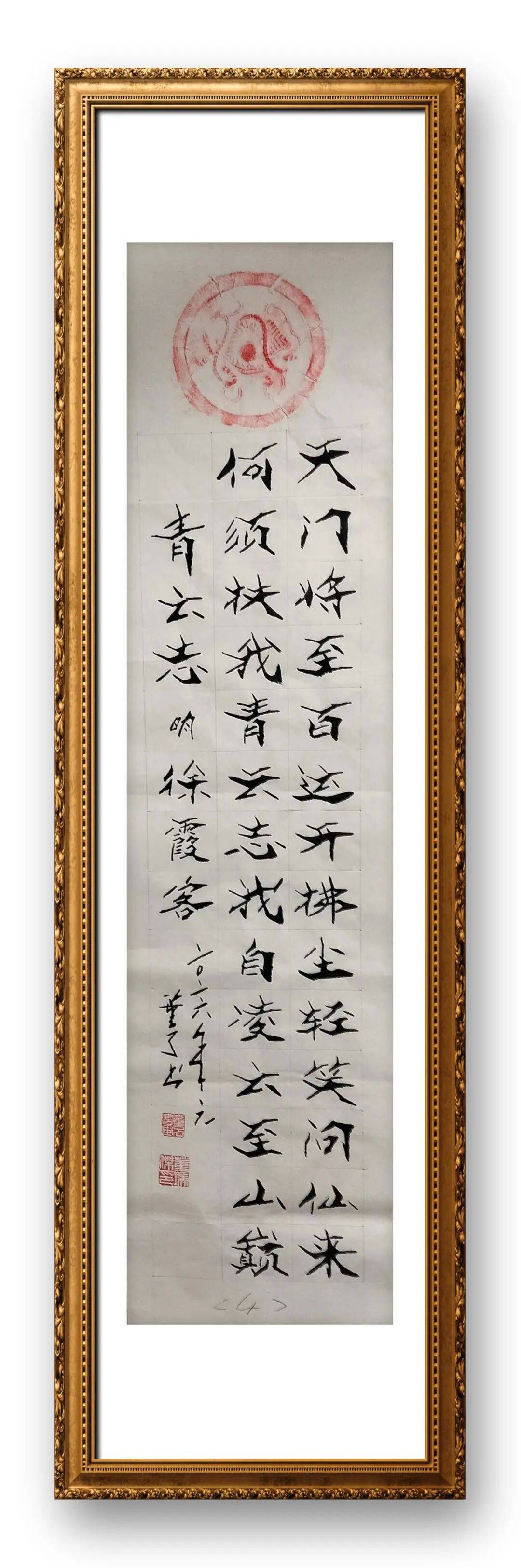 章法布局上,董瑞杰先生追求“自然和谐、气韵贯通”,将整体气势与局部细节完美融合,展现出“疏可走马、密不透风”的布局智慧。他的作品无论篇幅大小,都能做到首尾呼应、疏密得当,字与字、行与行之间相互映衬、错落有致,既没有刻意的雕琢之感,也没有杂乱无章的随意,尽显自然天成的艺术韵味。书写长卷作品时,他能把握整体节奏,笔墨由缓到急、由淡到浓,气势连贯如行云流水,让观者在品读过程中感受到书法艺术的韵律之美;书写斗方、条幅时,他则注重局部细节的打磨,字体大小、疏密、欹正的搭配恰到好处,既突出核心主旨,又兼顾整体美感。尤为值得称道的是,他的作品能“随形而绰其态,审势而扬其威,每笔皆成其形,每字各异其体”,字里行间彰显出中国传统文化特有的人文底蕴,展现出千锤百炼后的高超表现力和艺术素养。
