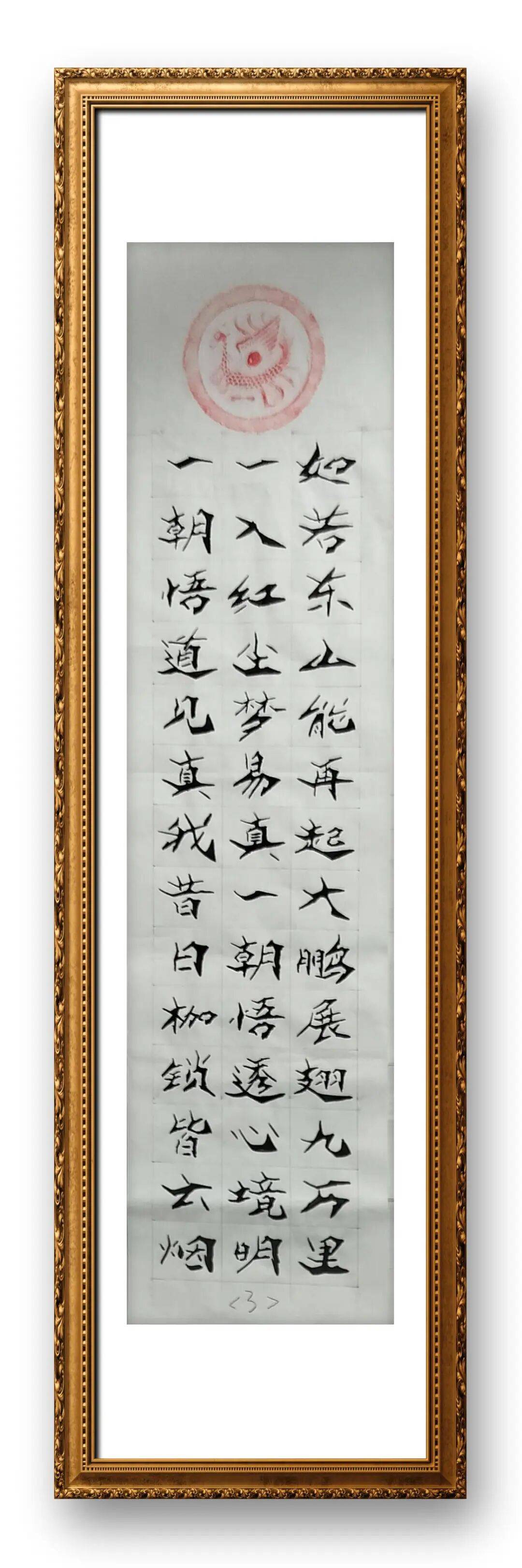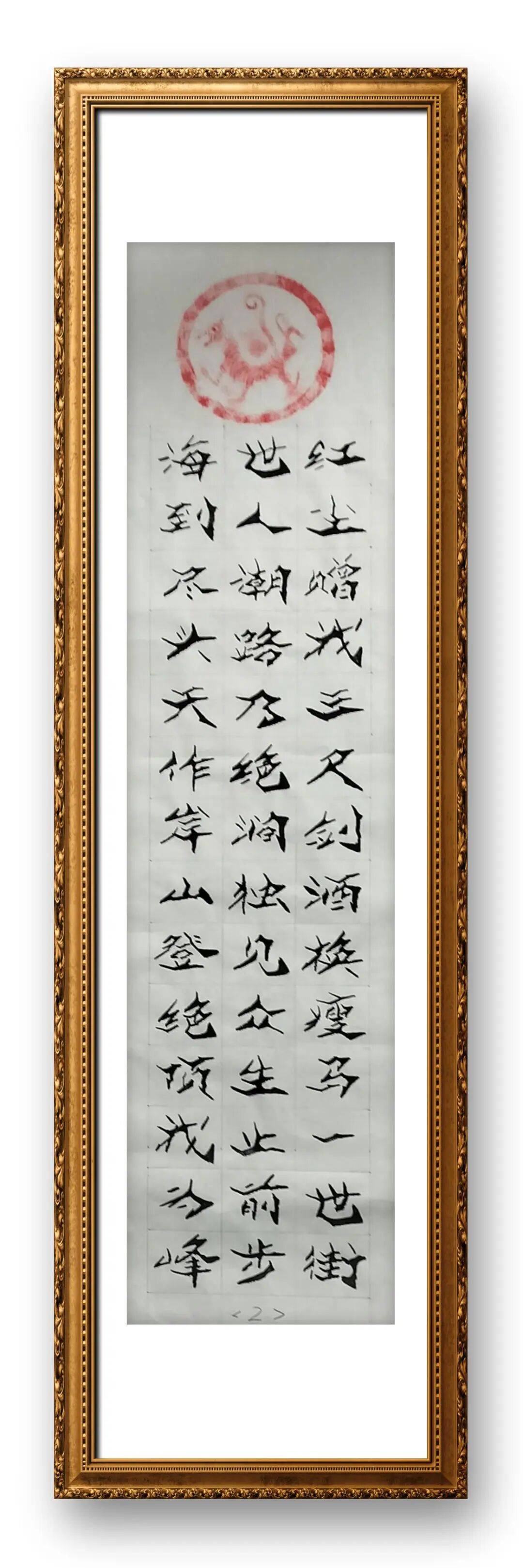 书写行草时,他能在一划之间变起伏于锋杪,在一点之内殊衄挫于毫芒,线条粗细枯润变化有度,牵丝映带自然流畅,既有秋鹰逐兔的惊心动魄,又有激楚浪以成文的翩翩洒脱,上下翻飞写动态,临危居高作势态,动与势相互转换,将行草作品写得左蹙右盼如惊电,状如楚汉相攻战。书写楷书与隶书时,他则收敛锋芒,笔法严谨规整,结体端庄大气,点画精准有力,尽显沉稳厚重的气度,形成了“行草飘逸、楷隶端庄”的多元风格,展现出扎实的笔墨功底与开阔的艺术视野。