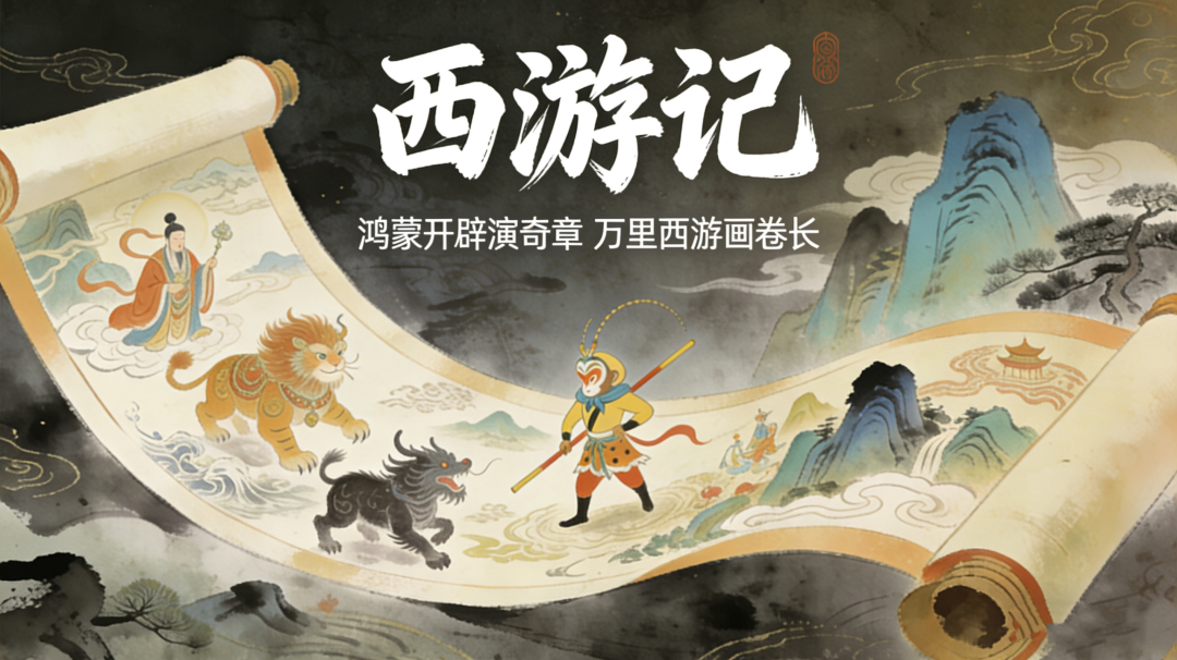 《西游记》者,神魔之奇谭,成长之寓言也。吴承恩以天马行空之想象,述唐僧师徒西天取经之壮举。孙悟空大闹天宫,喊出“皇帝轮流坐,明年到我家”,尽显反抗精神;七十二变、筋斗云,神通广大,降妖除魔,护师父一往无前。唐僧慈悲为怀,虽迂腐却矢志不渝,历经八十一难,终取真经;猪八戒贪吃懒惰,却憨态可掬,常怀凡心却不离不弃;沙僧忠厚老实,挑担牵马,默默奉献。其开场诗从混沌盘古写起,格局宏大,以“善”为核,道尽造化释厄之智慧,让人在神魔世界中悟得友谊之珍贵、毅力之刚强。