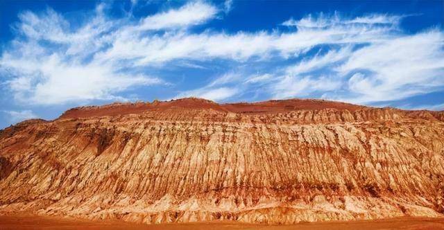 这里童山秃岭,寸草不生,飞鸟绝迹。每逢盛夏,红日高悬,赤褐色砂岩在烈日炙烤下灼灼闪光,炽热气流翻滚升腾,宛如烈焰熊熊、火舌撩天,“火焰山”之名由此而来。