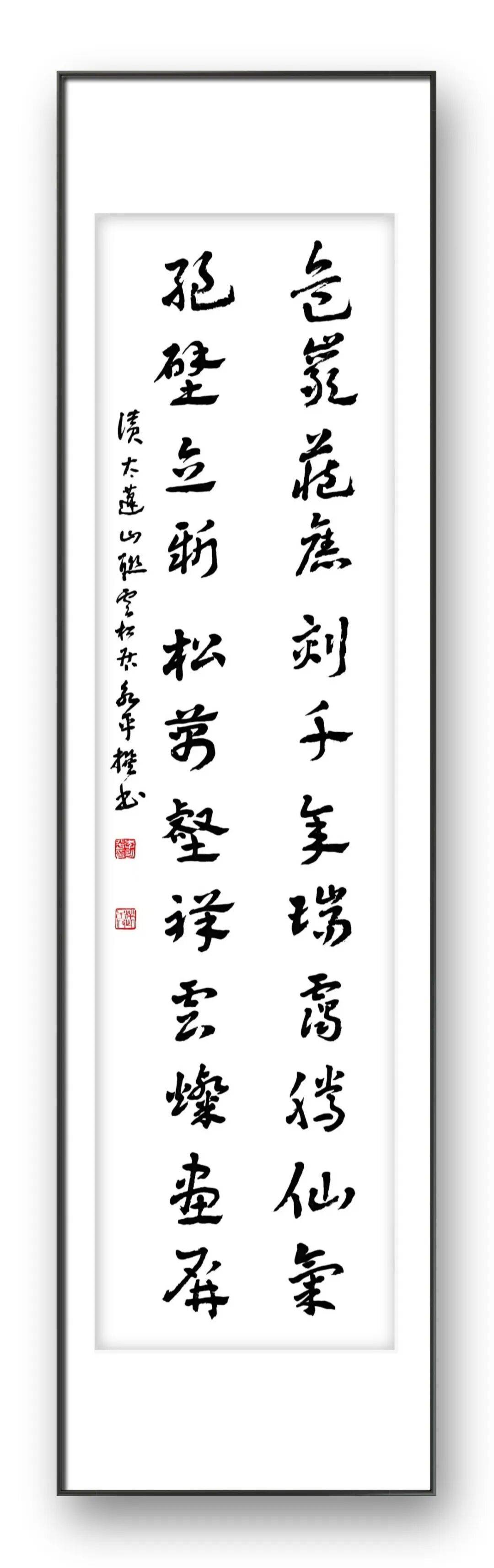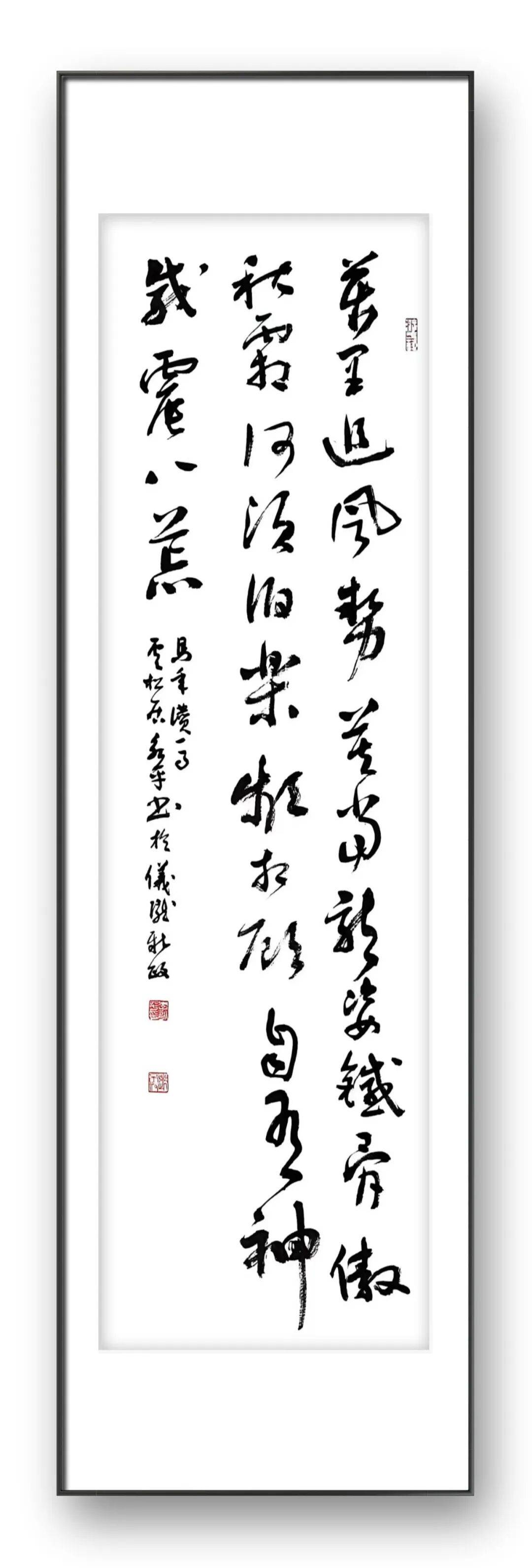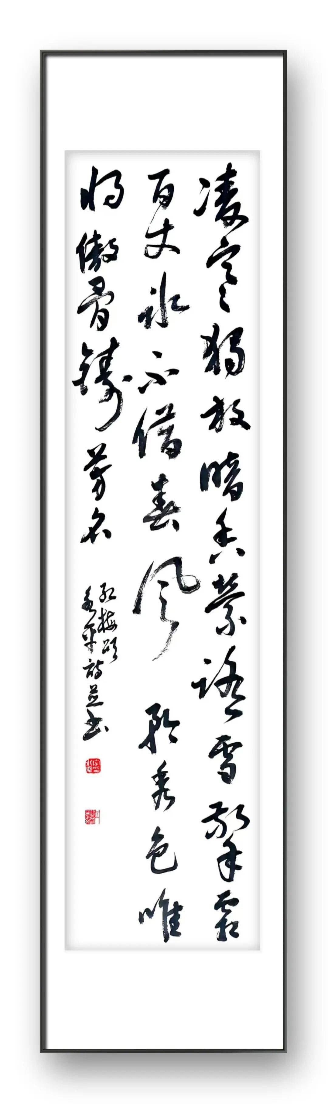 而行草作品,则是老师性情的淋漓释放。笔势纵横捭阖,墨韵跌宕起伏,既有王羲之的潇洒飘逸,又有颜真卿的雄浑刚健。线条如行云流水,或轻如蝉翼,或重如崩山,在提按顿挫间尽显书写的韵律与节奏。字与字之间顾盼呼应,气脉贯通,虽连绵不绝却又字字独立,在动态的平衡中营造出强烈的视觉张力。时而如疾风骤雨,气势磅礴;时而如小桥流水,温婉雅致,将情感的起伏与笔墨的变化完美融合,让人在流动的线条中感受到生命的律动与艺术的激情。