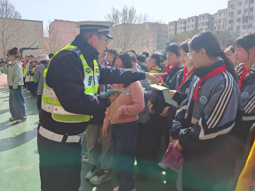 最后,交通局民警讲解交通知识,梳理了学生日常出行中常见的交通风险点,包括步行安全、骑行安全、乘车安全三大核心内容展开讲解。并展示交警常用指挥动作,生动形象地向同学们讲解了红绿灯、斑马线、交通信号灯等基础交通知识。