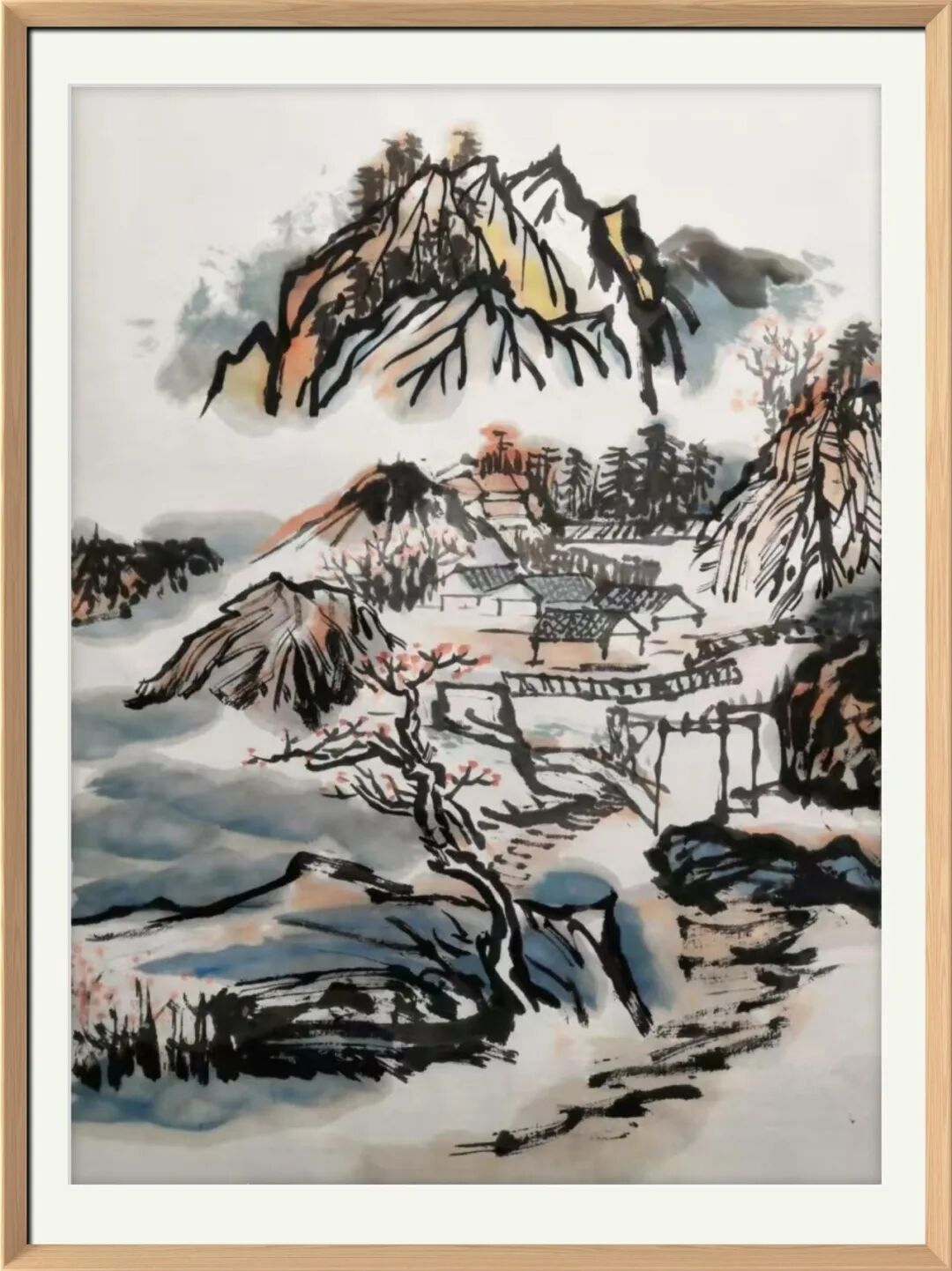 先生于绘画造诣精深,尤擅山水、花鸟,师法自然而不拘古法,笔墨苍润灵动,构图疏密有致。坚守传统文人画笔墨精神,大胆融入现代审美与西方艺术理念,创作一大批书画并重、中西结合的划时代精品力作,形神兼备,意境悠远,尽显东方美学深邃意境。