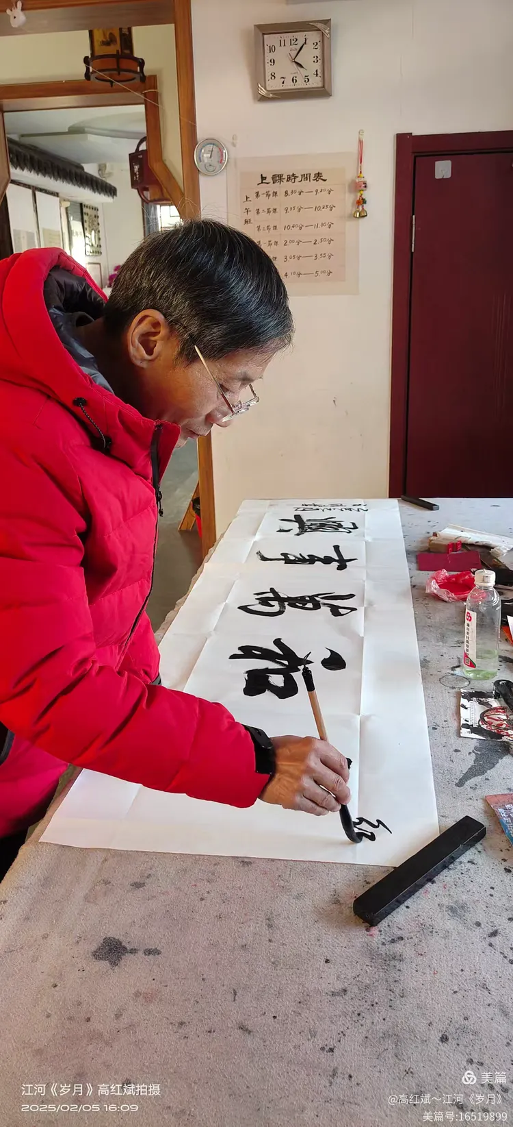 今天是正月初八,我们还都沉浸在春节快乐的氛围中,这对我来说这真是一个难得的经历!我怀着万份敬慕的心情来到了著名的书法家王明学老师的工作室。王明学老师是一位在书法领域有着深厚造诣的大家,能够见到他让我收获满满。亲爱的朋友,你可以从以下几个方面来了解我此行的心情和感受: