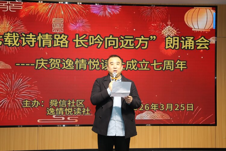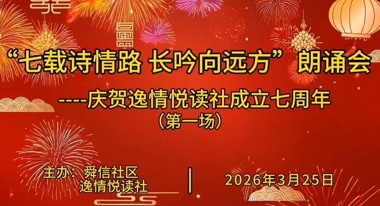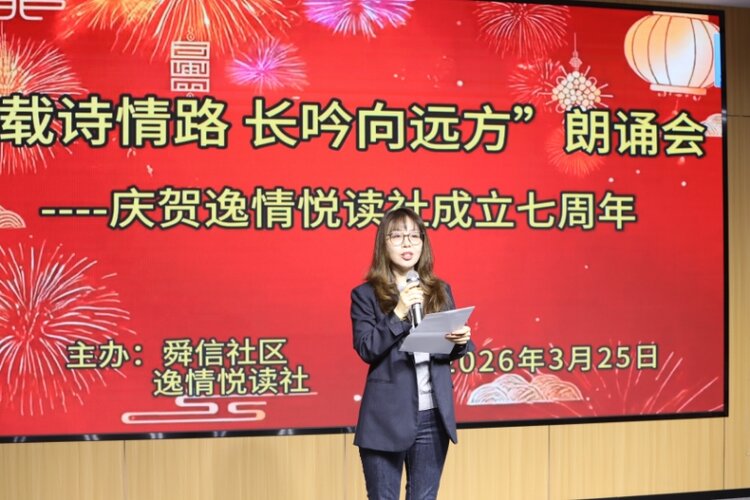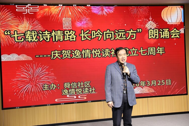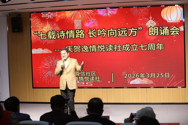 春风拂面,诗意盎然;书香盈袖,岁月含香。2026年3月25日上午,庆贺逸情悦读社成立七周年第一场诗歌朗诵会,在东城逸家活动中心隆重举行。大家以诗相约,以声传情,共同唱响主题——七载诗情路,长吟向远方。