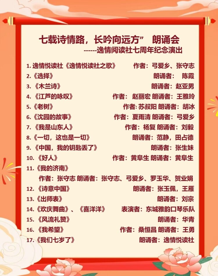 感谢每一位朗读者的深情演绎,感谢每一位朋友的温暖相伴。七年,是一段诗意旅程,更是一个崭新起点。愿我们永远以书为舟、以诗为翼,在文字里坚守热爱,在诵读中奔赴山海。