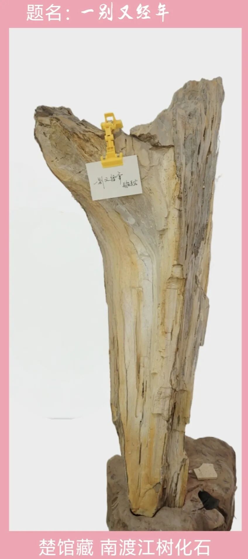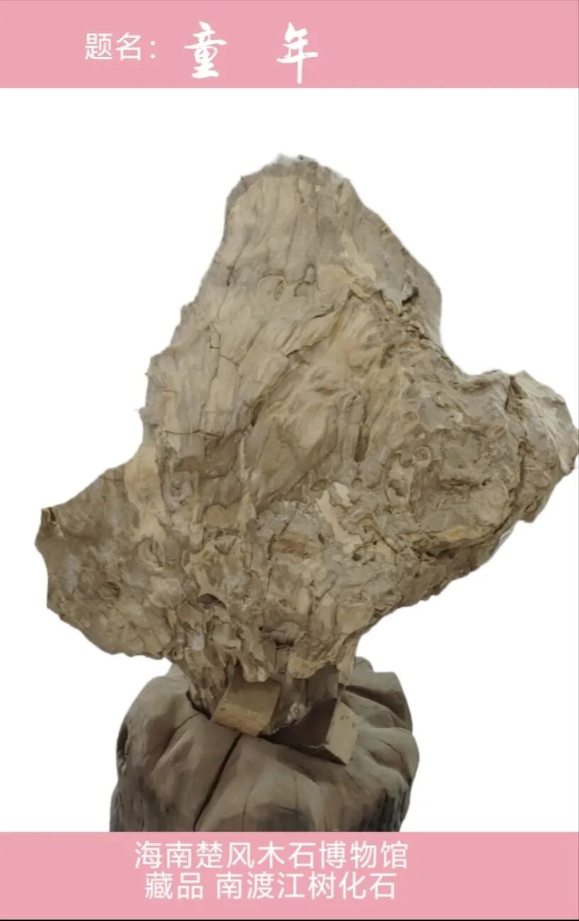注:亿年磨砺句。据地质学家研究,南渡江树化石年愈亿年。历经地震、火山爆发,一万棵树有幸成为化石的只有一棵!万分之一!