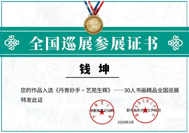 钱坤先生,这位从山城重庆走出的艺术家,以其深厚的艺术造诣和广泛的社会认可,在中国当代画坛占据着独特的位置。其艺术成就早已获得国家与行业的双重认证。纵观其创作生涯,钱坤的艺术深深根植于中华大地,饱含对故土的热爱与对国家的忠诚。