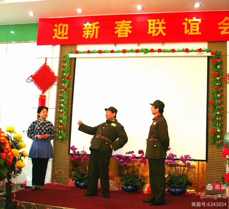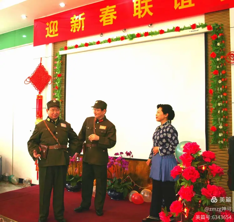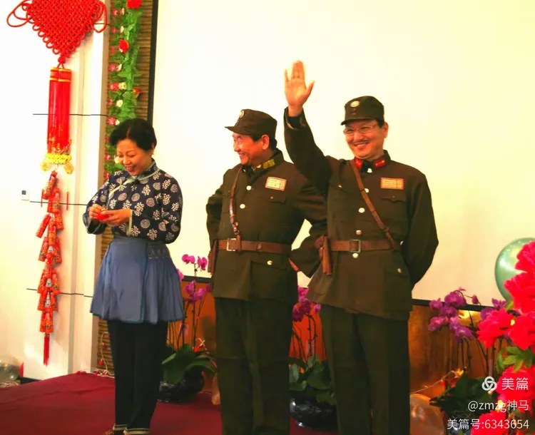 至今记得出场时的热烈场面。由于保密工作做得好,化妆彩唱大家事前都不知道。当我们身着忠义救国军军装突然出现在大家面前时,同事们稍有惊愕后立刻爆发出哄堂大笑和热烈掌声。接下来唱的怎么样已经不是太重要了!