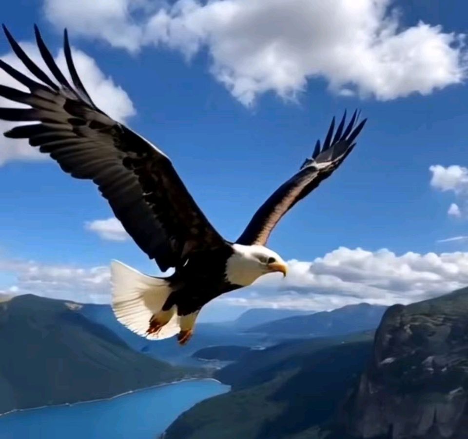 铁喙棱棱,金眸炯炯,劲翮摩天。看霜翎焕彩,穿云裂帛;钢爪凝锋,搏电凌烟。俯瞰神州,遥临瀚海,万里苍茫入眼帘。扶摇势,正排空击水,直上遥巅。