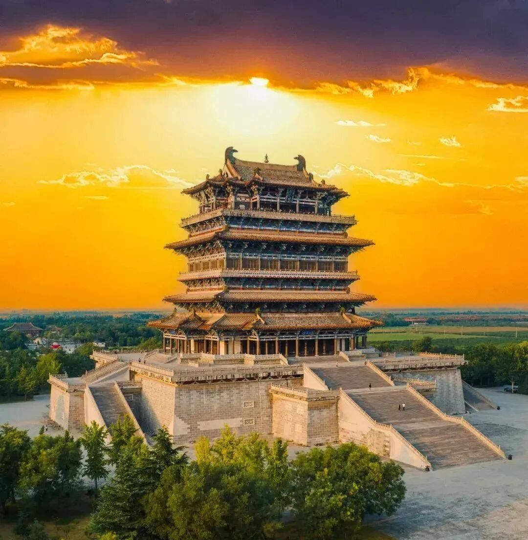 北周肇建,阅尽千年烽火;元季蒙尘,幸留绝唱人间。鹳雀楼雄峙晋地,西襟黄河涛浪,南枕中条翠峦,与黄鹤楼、滕王阁、岳阳楼并称华夏四楼,尽显大河文明之厚重。王之涣一诗振聋发聩,“欲穷千里目,更上一层楼”,将天地寥廓与进取之志熔于笔端,令此楼从戍边烽堞跃升为文化图腾。登楼凭栏,白日衔山而没,黄河奔海不息,远村烟树与归帆沙鸥共入眼底,河风裹着千古诗意扑面而来。今之鹳雀楼,仿唐重光,飞檐翘角映日鎏金。楼内壁画铺展蒲州盛景,诗词墙镌刻文人雅韵;楼外岸畔层林尽染,黄河如练蜿蜒,枫林似火、银杏流金,自然盛景与诗韵底蕴撞出震撼人心的交响。驻足此处,方懂山河为笺、历史为墨,才写就这跨越千年的文化传奇。