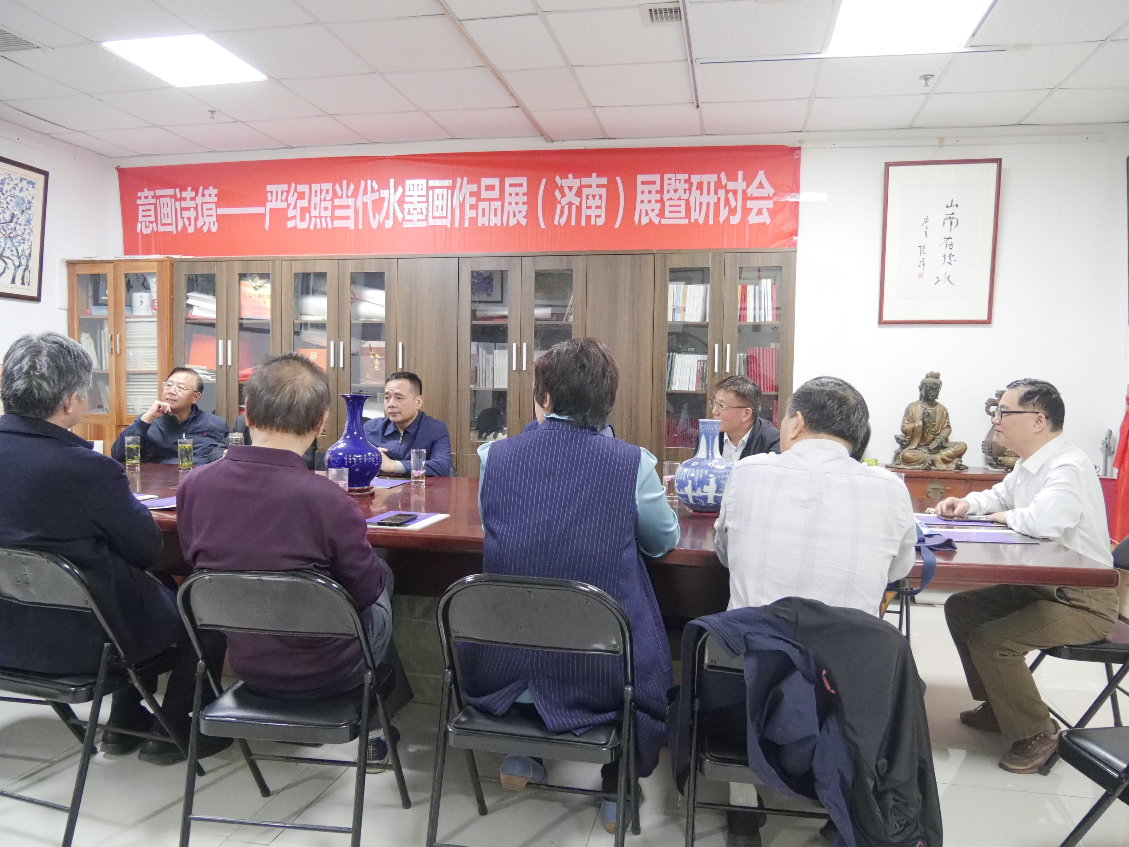 3月28日上午,意画诗境——严纪照当代水墨作品展在济南新世界文化城四楼大红门艺术馆开幕,同时举办了作品研讨会,由著名策展人、文艺评论家、大红门艺术馆馆长,济南市作协原副主席宋俊忠先生主持研讨会。与会专家和领导一致认为严纪照的作品具有独特的笔墨语言,极高的图式辨识度,强烈的个人艺术符号,善于在细微处表述宏观的大宇宙,天地由心,用笔墨描述对宇宙、生命、时间等向度的哲学思考和人文情怀,在当今画坛,不媚俗,不套路,拒绝“油”和“熟”,坚持追求“拙”和“涩”,逐渐找准了自己的向度和高度。同时,大家对严纪照的未来的艺术之路也提出一些建设性的意见和建议。严纪照最后表达诚恳的谢意,表示,在接下来,继续努力不断创作出更多更好的作品,不负大家的支持、鼓励和提携。