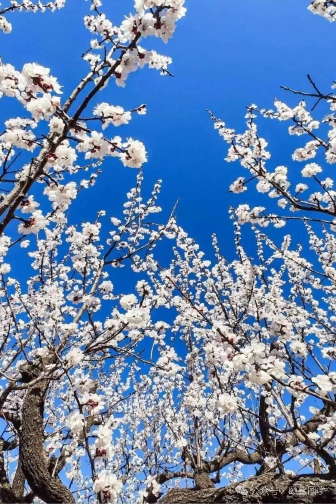 老杏树,苍皮皴裂,枝上却堆雪凝烟,