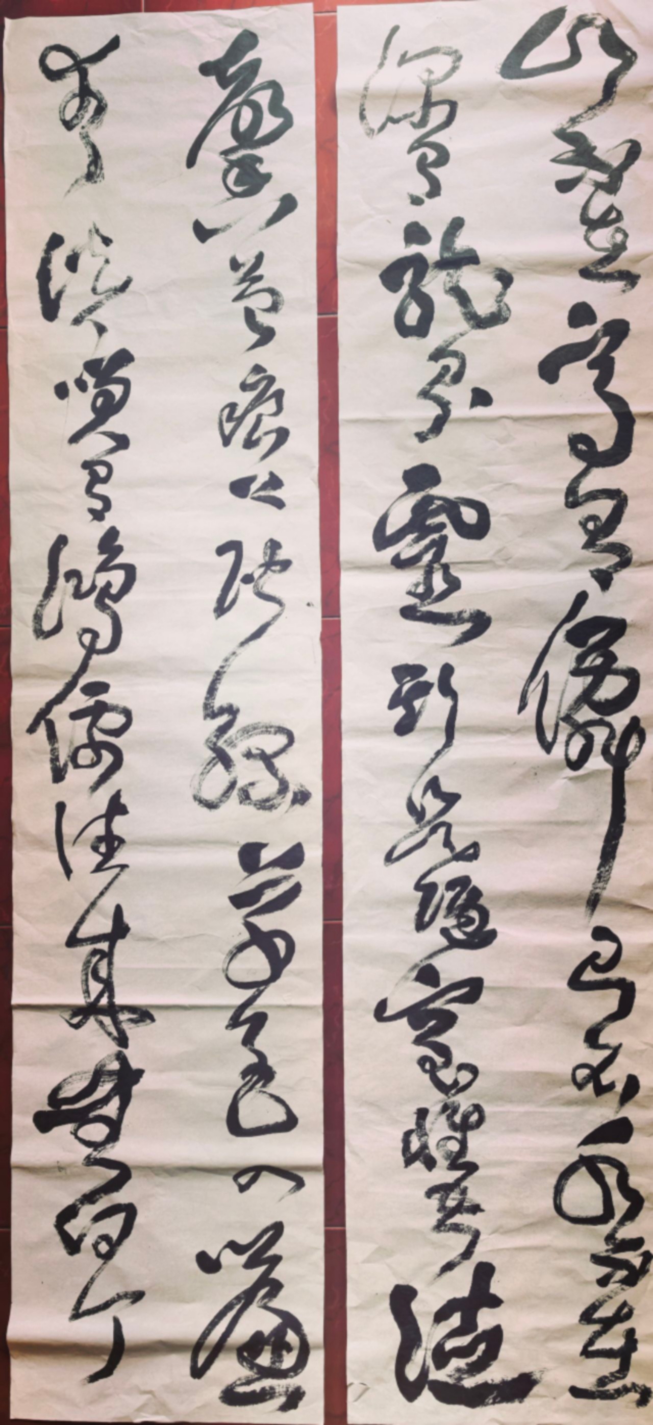 大小错落的章法:整体布局不追求字字均等,而是大小穿插,欹正相生。这完全打破了传统草书的规整,借鉴了爨碑中“奇姿百出”的结构美学。有的字极力舒展,如“龍”、“靈”,大开大合;有的字则收敛紧凑,形成强烈的视觉对比,让整幅作品气息流转,不板滞,不沉闷。