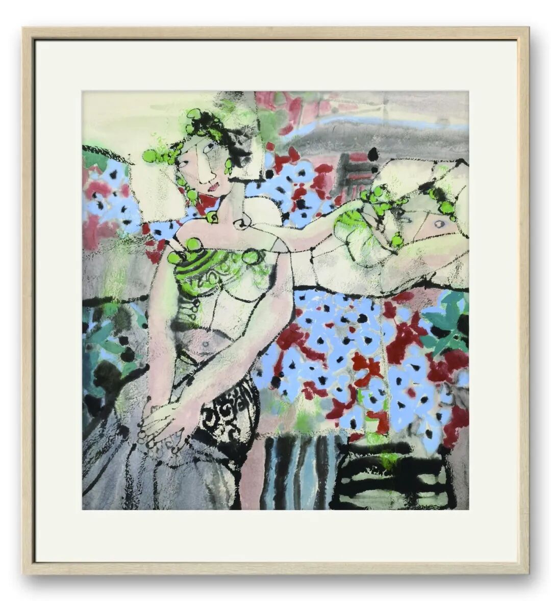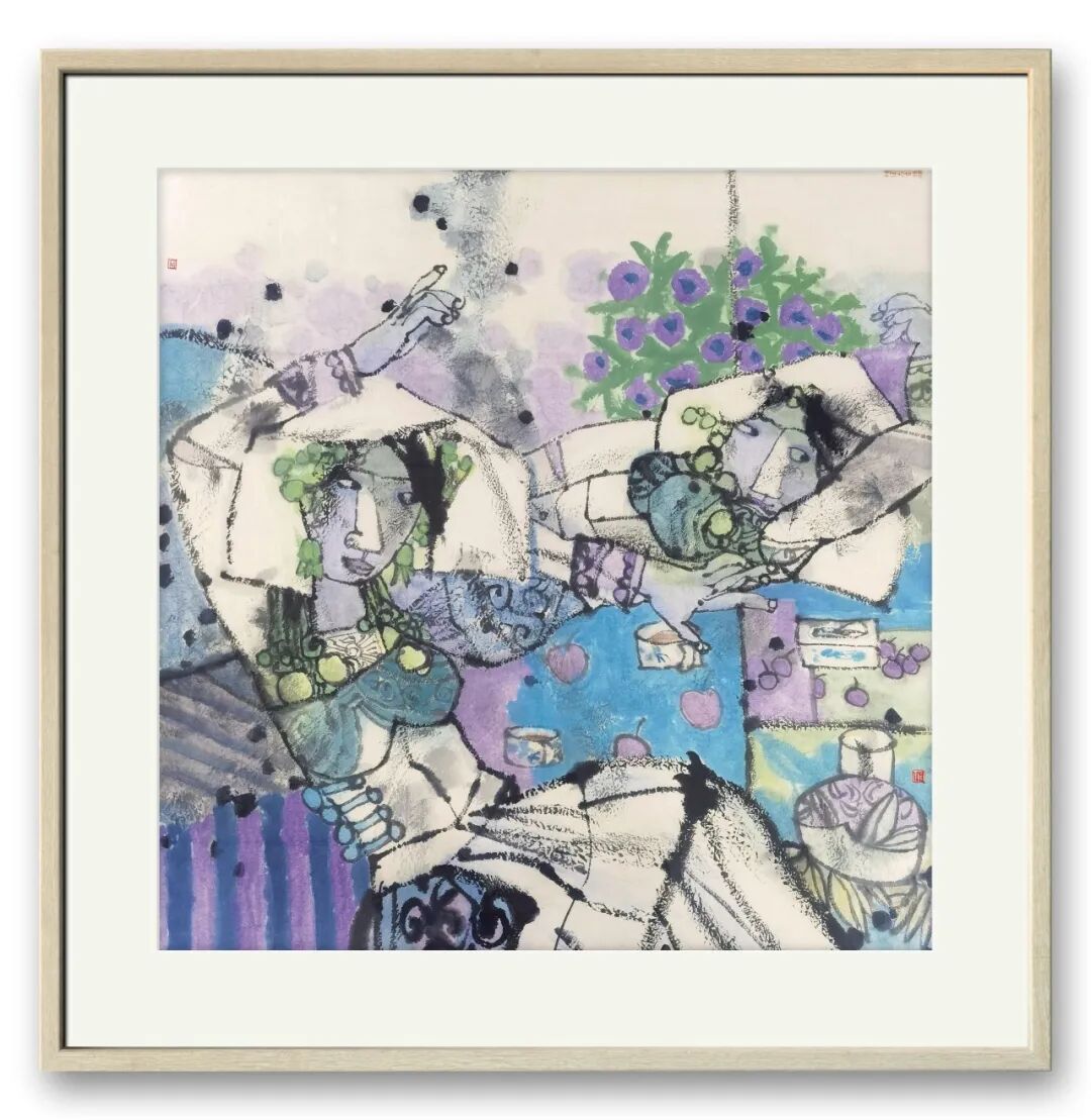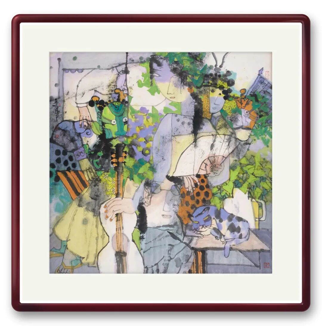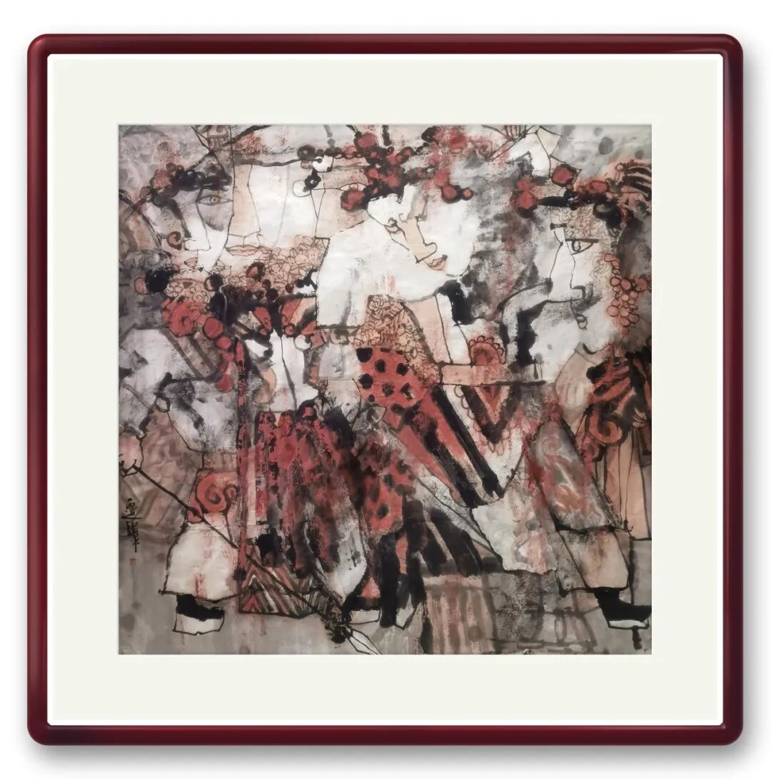 笔墨之外,周卫平更重文化内涵与审美创新,在传统与当代碰撞中走出特色之路。他借鉴民间木版年画、剪纸色彩精髓,融入现代构图,打破传统条屏束缚,以解构重组营造韵律美,反透视手法增添视觉张力。《梨园千秋》以条屏联动展现生旦净末丑群像,笔墨苍劲、色彩明快,既显戏曲包罗万象,又传中华文脉厚重,更让中国戏曲神韵借水墨走向世界。