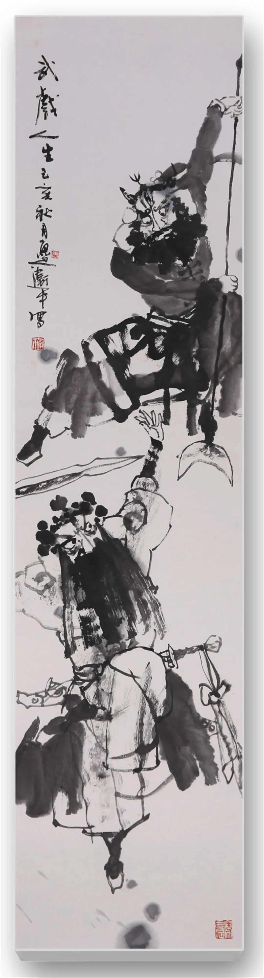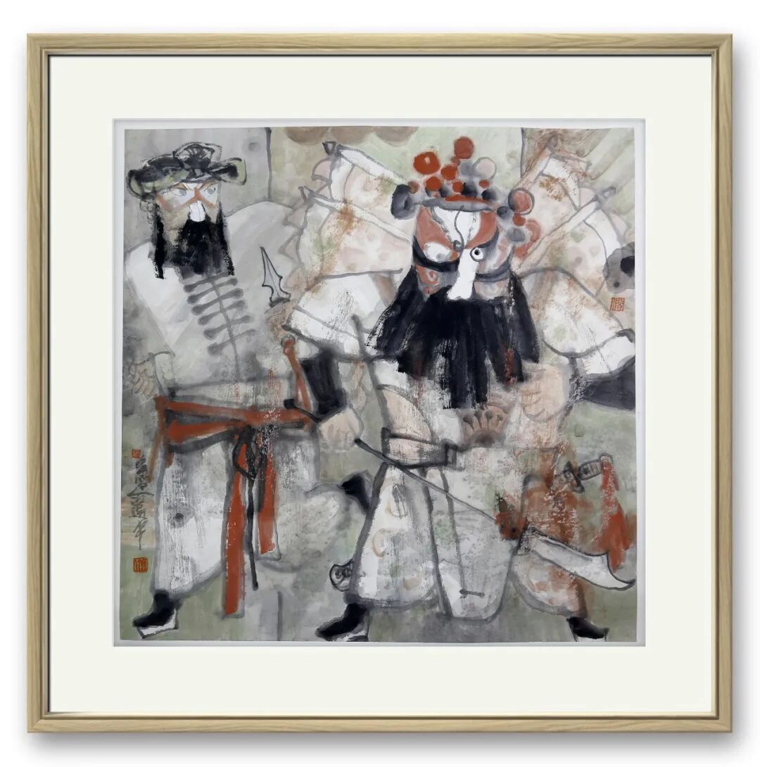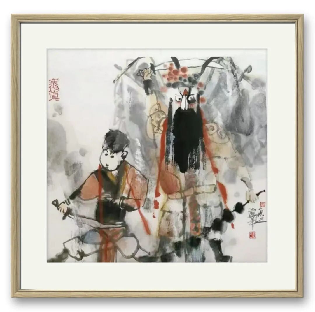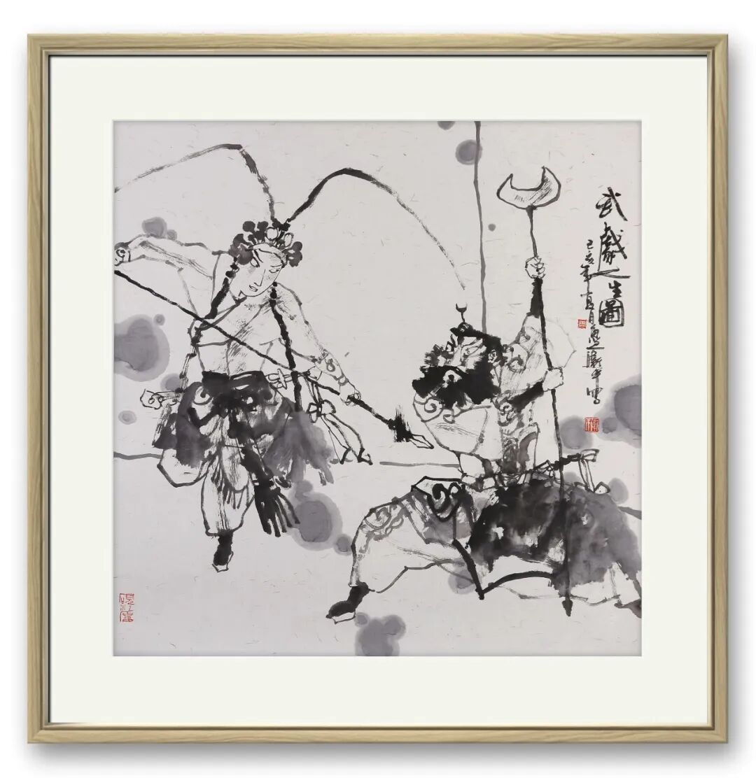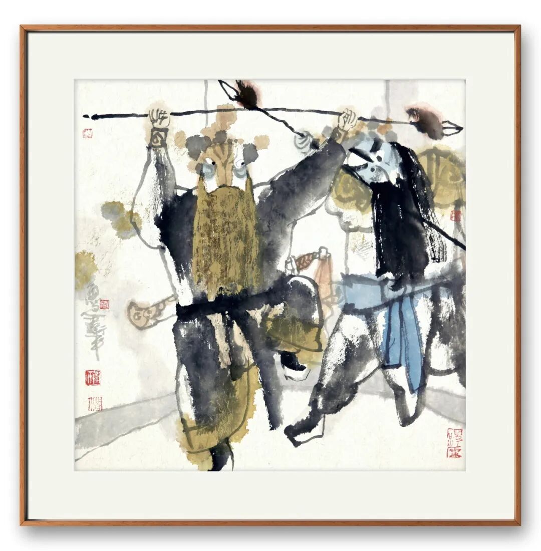 难能可贵的是,其创作扎根生活、贴近时代,不局限于传统戏目,将当代视角融入其中。他深入戏院揣摩,以速写记录演员神态动作,从民间艺术汲取灵感,让笔下人物不再是遥远符号,而是有温度的生命个体。《武戏人生》诠释戏曲艺人的坚守,《戏韵国粹》礼赞传统艺术传承,每幅作品都承载着他对戏曲的热爱、对传统的敬畏,彰显当代艺术家的担当。