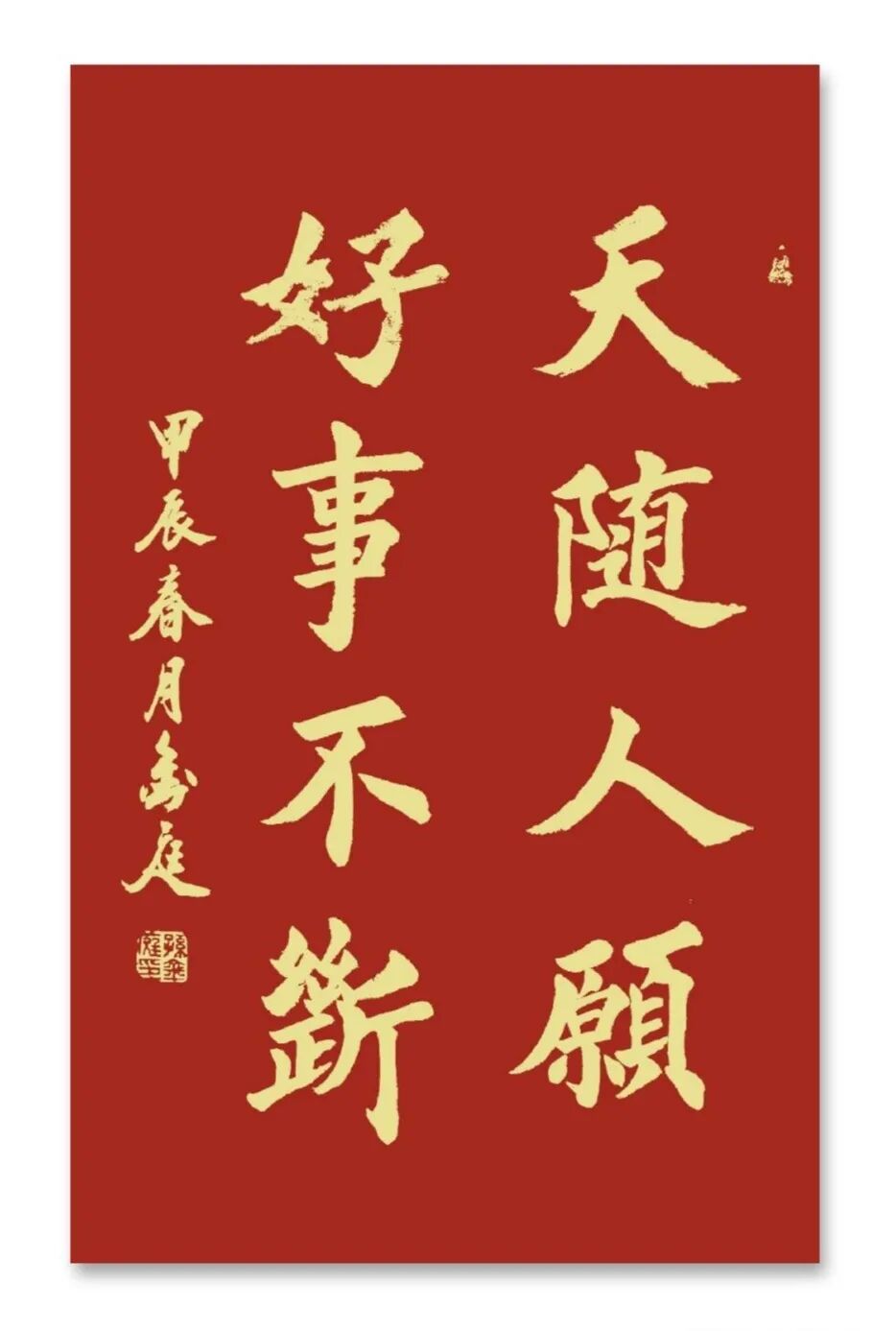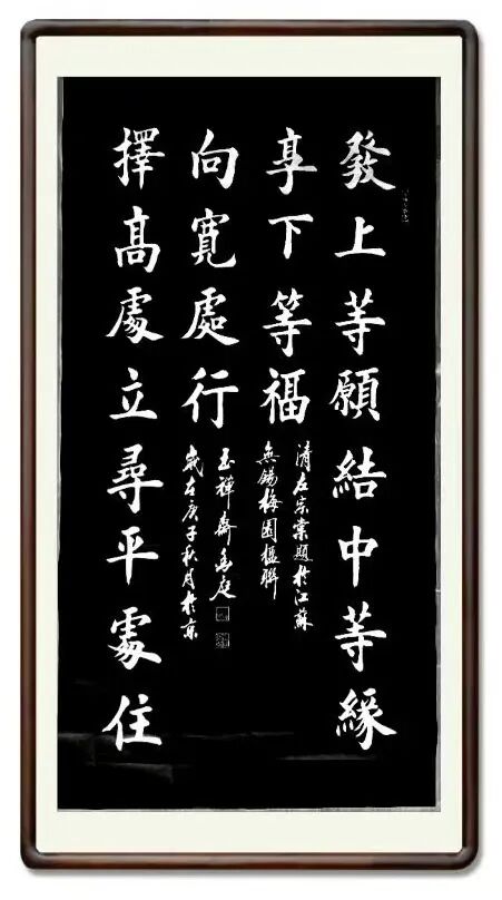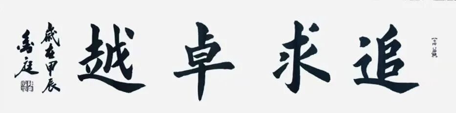 孙金庭先生不断将楷书功夫拓展到大处落笔,形成极具气神的榜书作品系列,也是书坛的奇观体系。榜书作为书法艺术中的重要组成部分,要求书法家具备强大的气势与深厚的文化底蕴。孙金庭的榜书作品在气浑然,充满笔墨凝聚起来的威仪力量,无论是装饰家居还是公共空间,都能够营造出正大气象,给出庄重而不失活力审美感觉,唯有对书法文化的传播规则以及对笔墨有着深刻的理解和卓越的控制力逸如拍云追月!