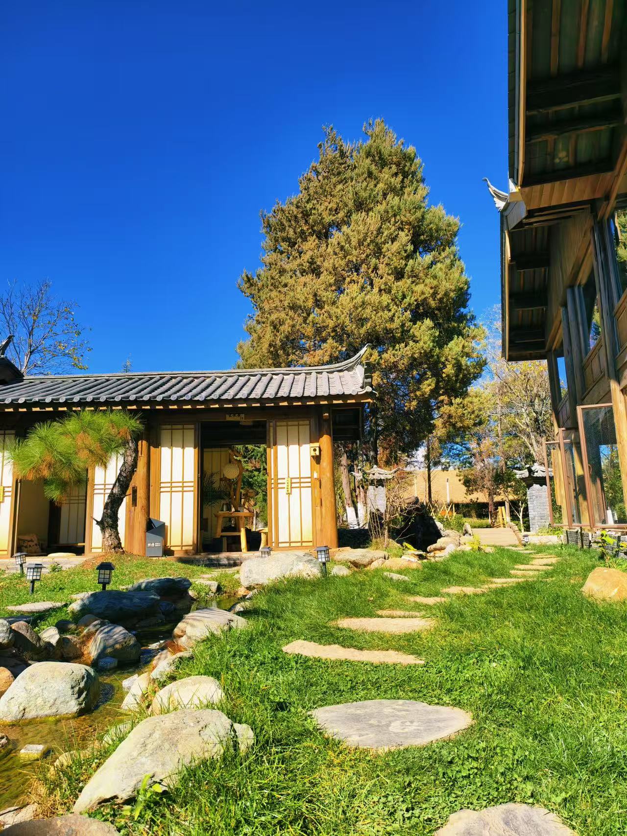 茶境清溪台的空间设计由知名设计团队操刀,以“共生形态”为核心设计哲学,打破了传统茶馆的刻板模式,注重将自然元素、纳西族建筑特色与现代简约风格完美融合,打造出“一步一景、一景一茶、一茶一境”的沉浸式体验空间。整个茶境占地面积约800平方米,分为室内茶区、室外露台、文化展厅、茶学院、茶品研发区五大功能区域,各区域相互衔接又相对独立,既满足了不同人群的需求,又保持了空间的整体性与连贯性。