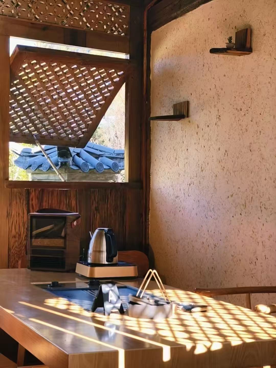 整个茶境占地面积约800平方米,由知名设计团队操刀,以“共生形态”为核心设计哲学,打破了传统茶馆的刻板模式,注重将自然元素、纳西族建筑特色与现代简约风格完美融合,分为室内茶区、室外露台、文化展厅、茶学院、茶品研发区五大功能区域,各区域相互衔接又相对独立,既满足了不同爱茶之人的需求,又保持了空间的整体性与连贯性,每一处细节都彰显着木澜玥的匠心与对茶的敬畏。