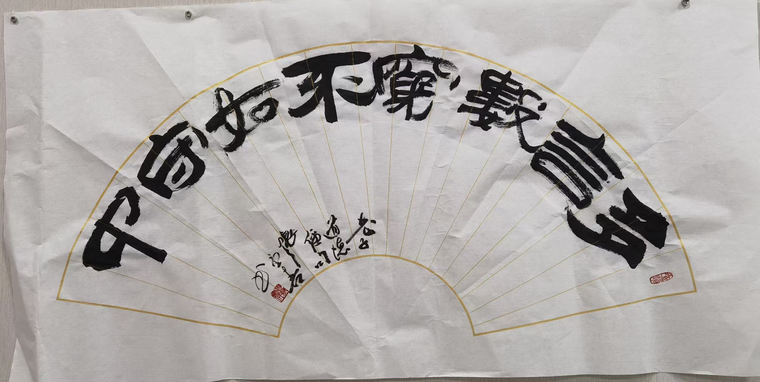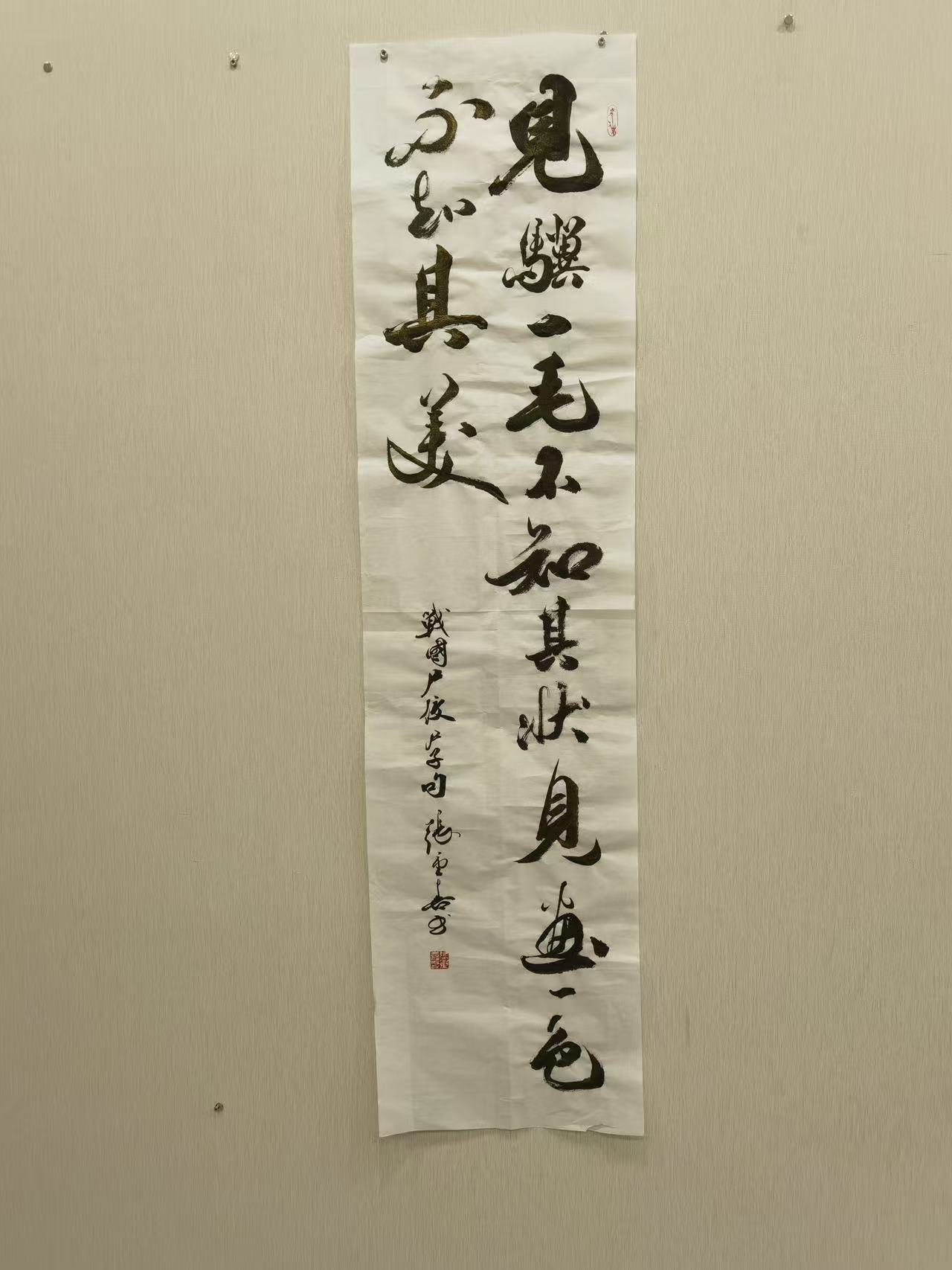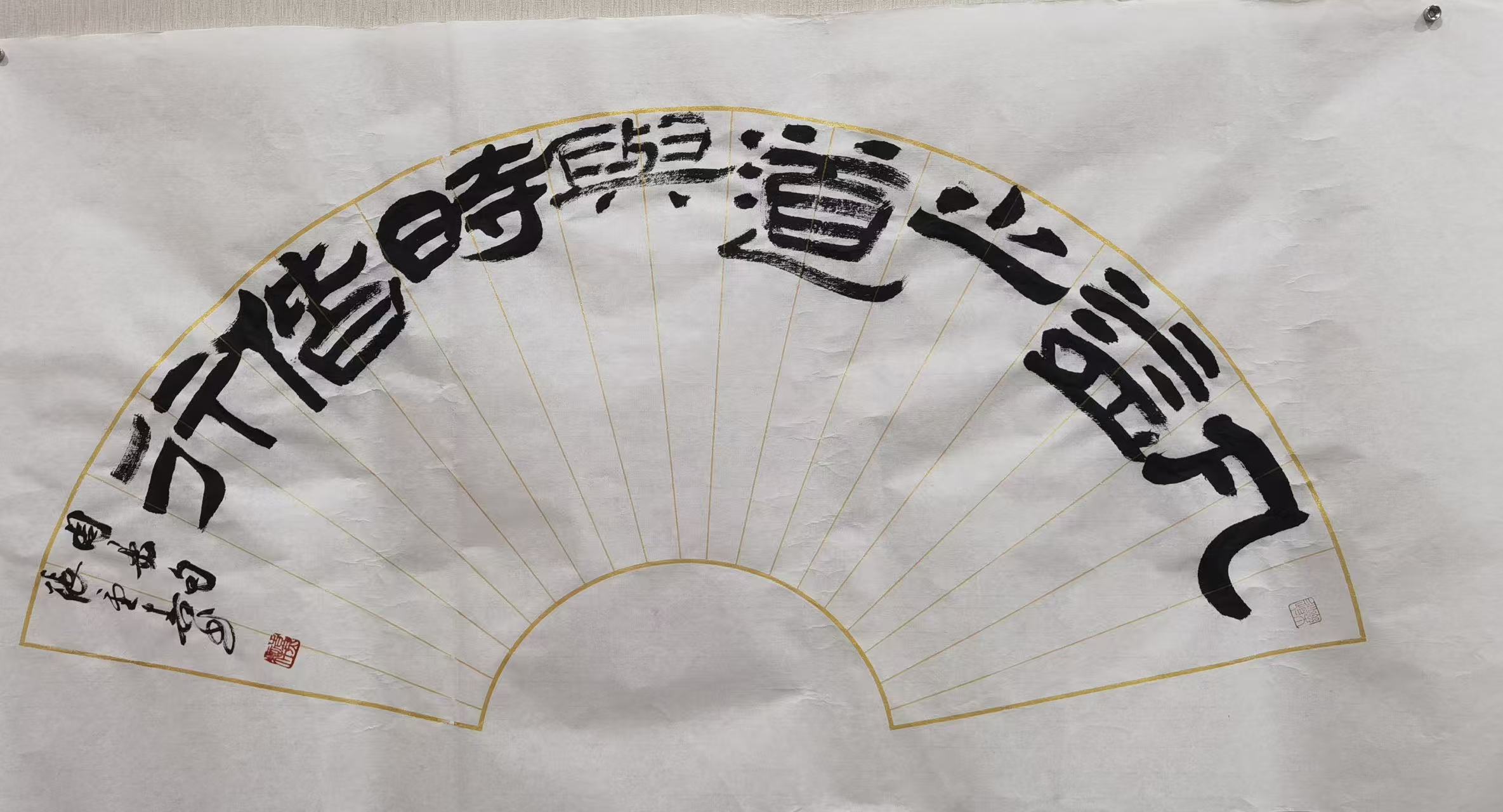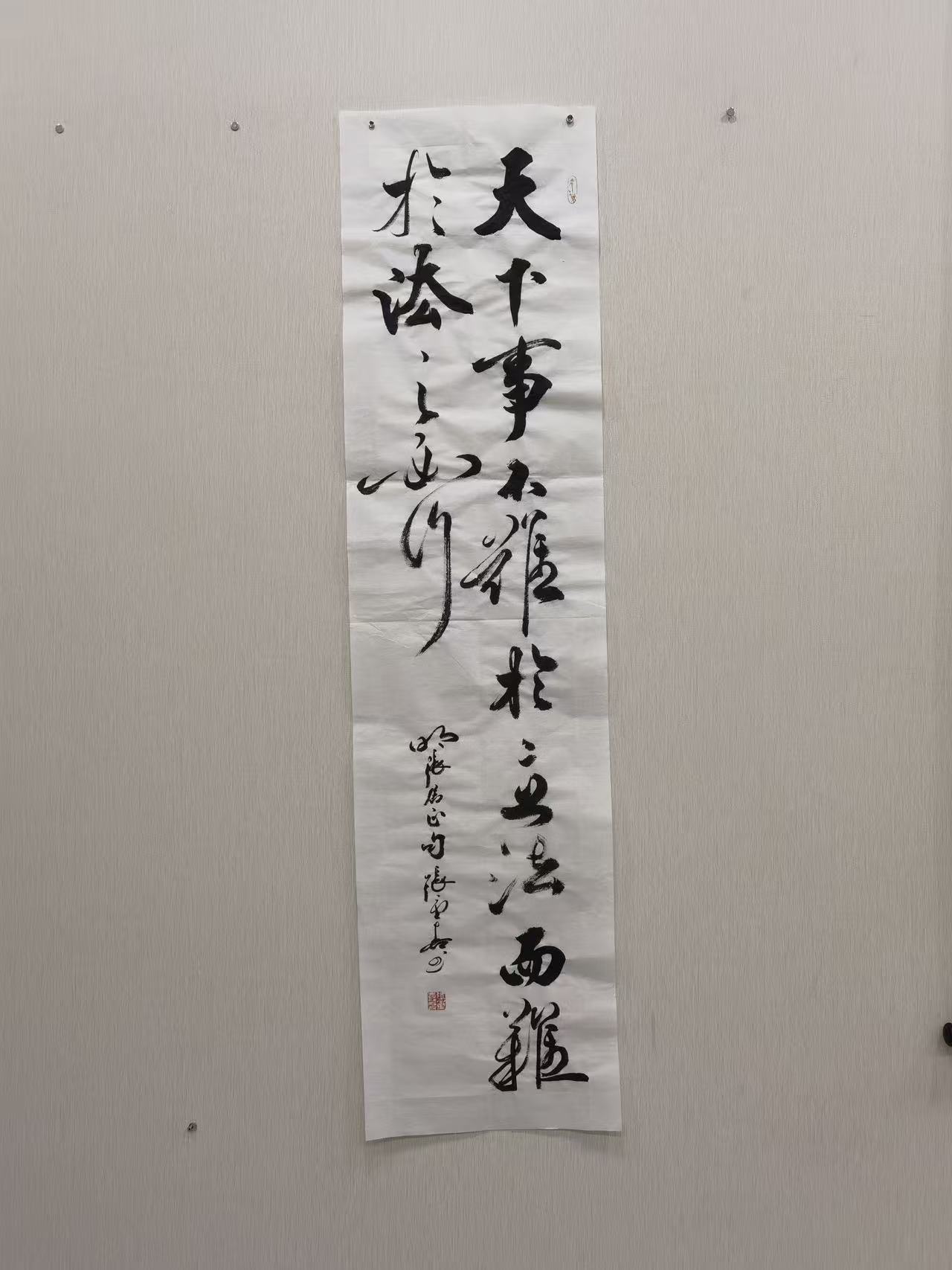 师承杨再春,悟书法精髓。他师从当代书法大家杨再春,杨再春以笔法精湛、风格刚健、兼具传统与现代著称,主张“扎根传统、关注时代、书写本心”。在师承过程中,他不仅习得扎实的笔法、墨法、章法技艺,更领悟“书法即心法、笔墨即精神”的艺术内核,学会以辩证思维看待传统与创新的关系,避免陷入摹古的窠臼或盲目创新的误区。师徒二人常探讨书法发展路径,杨再春鼓励其“博采众长、自成一家”,为其风格独立指明方向。