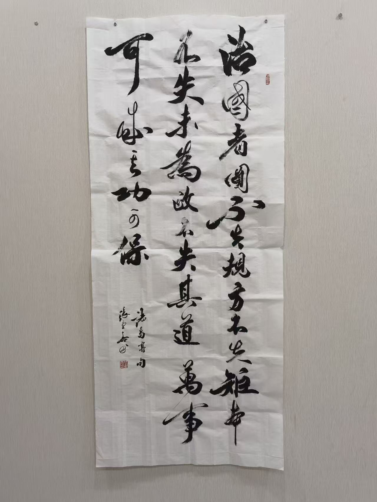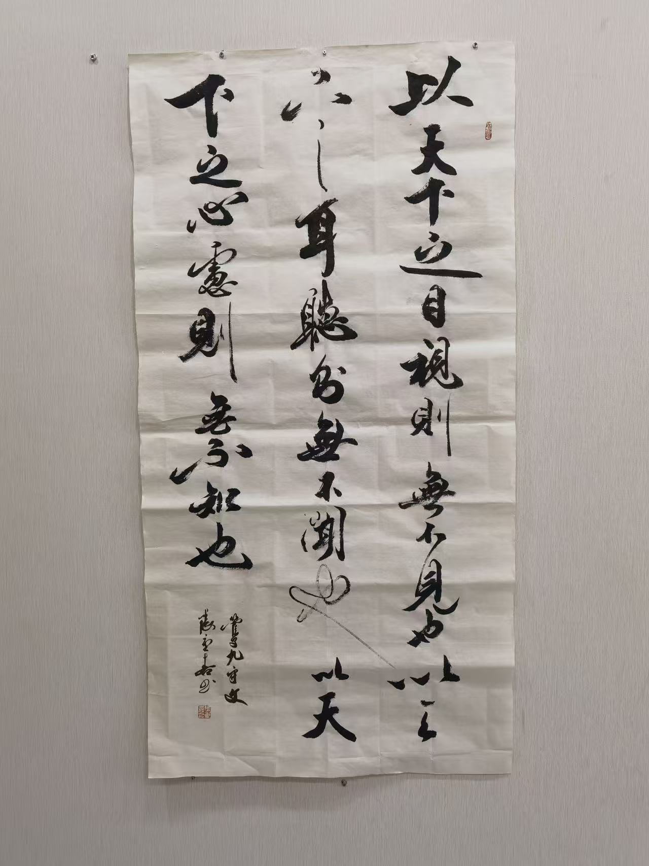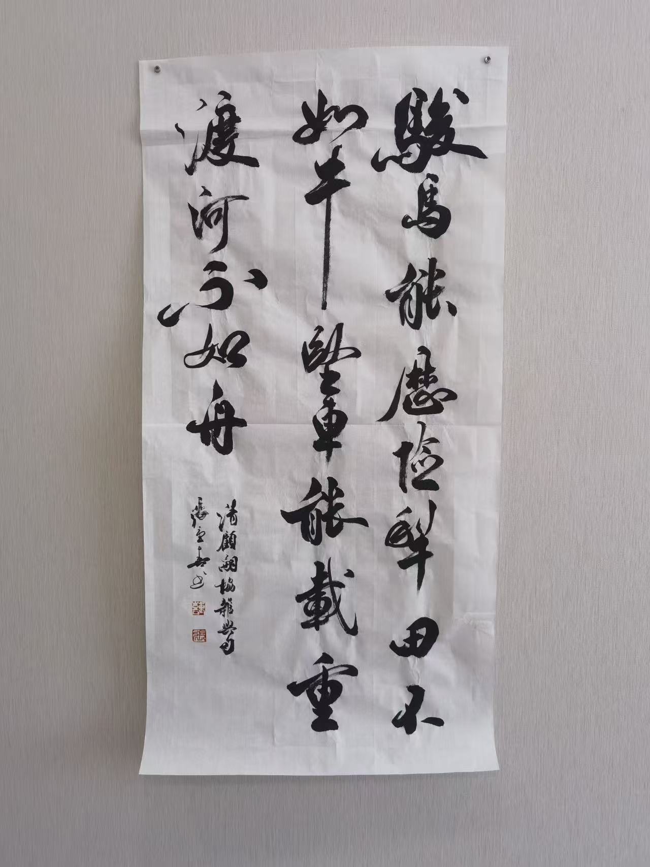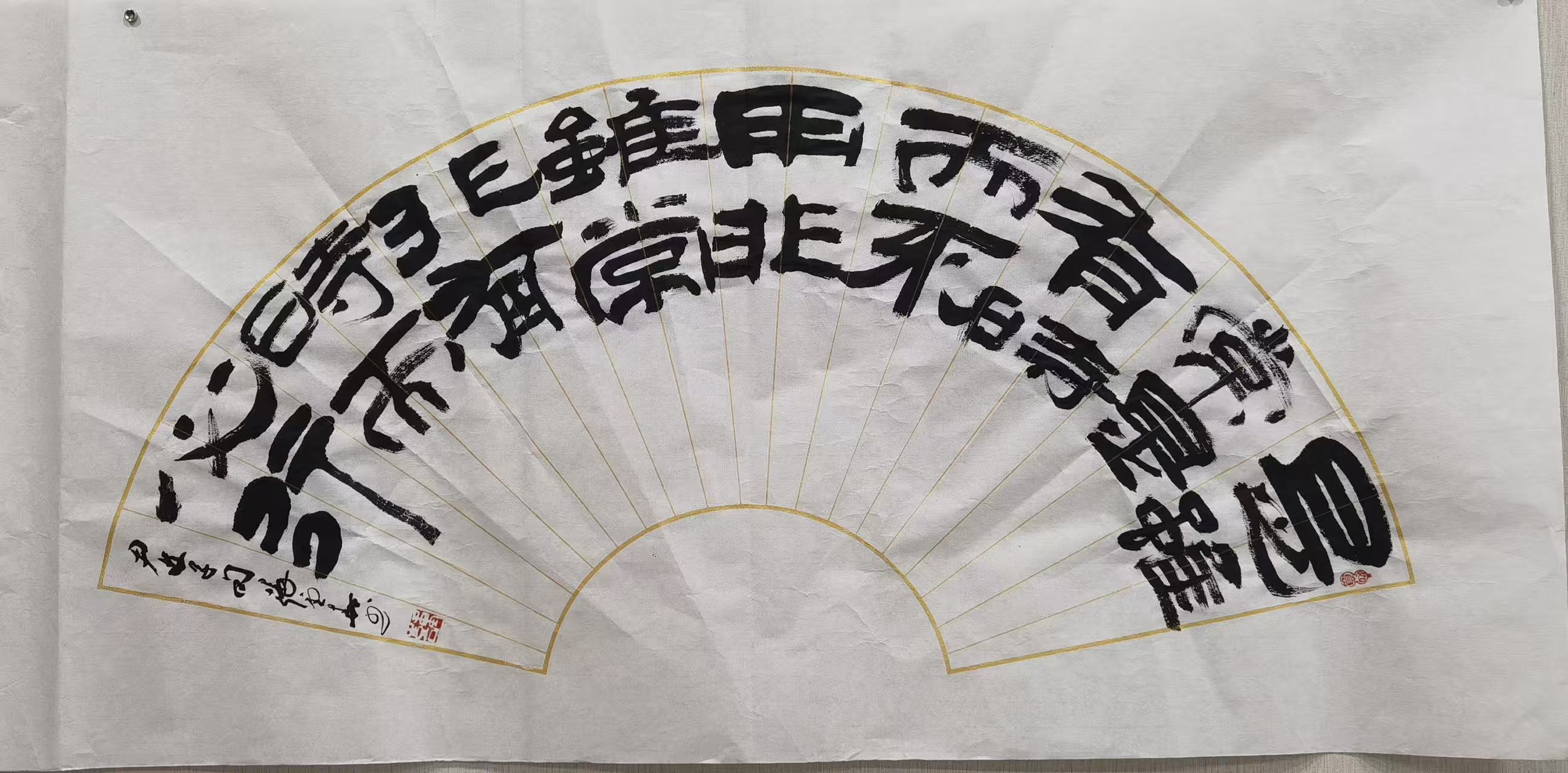 师承杨再春,悟书法精髓。他师从当代书法大家杨再春,杨再春以笔法精湛、风格刚健、兼具传统与现代著称,主张“扎根传统、关注时代、书写本心”。在师承过程中,他不仅习得扎实的笔法、墨法、章法技艺,更领悟“书法即心法、笔墨即精神”的艺术内核,学会以辩证思维看待传统与创新的关系,避免陷入摹古的窠臼或盲目创新的误区。师徒二人常探讨书法发展路径,杨再春鼓励其“博采众长、自成一家”,为其风格独立指明方向。