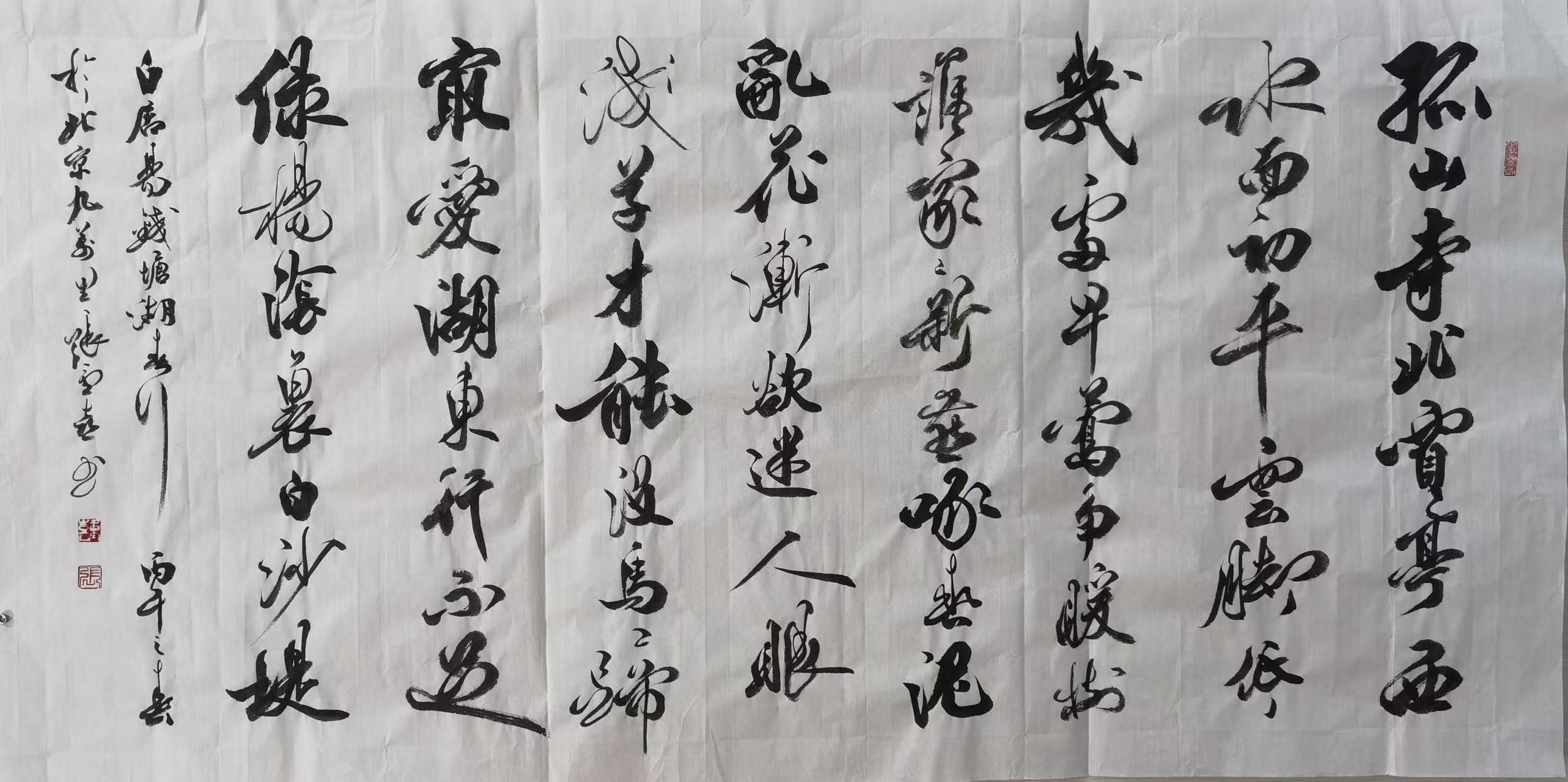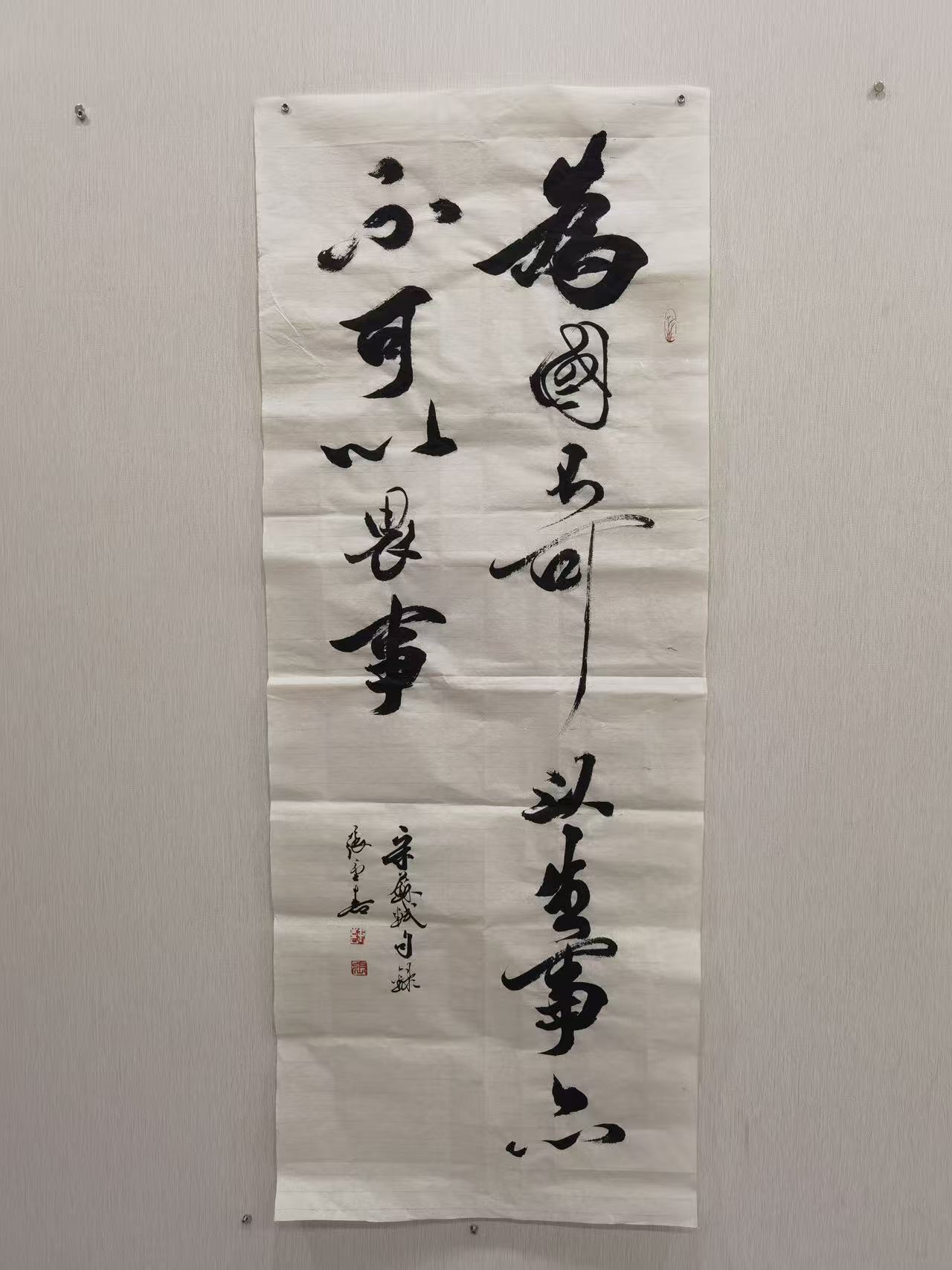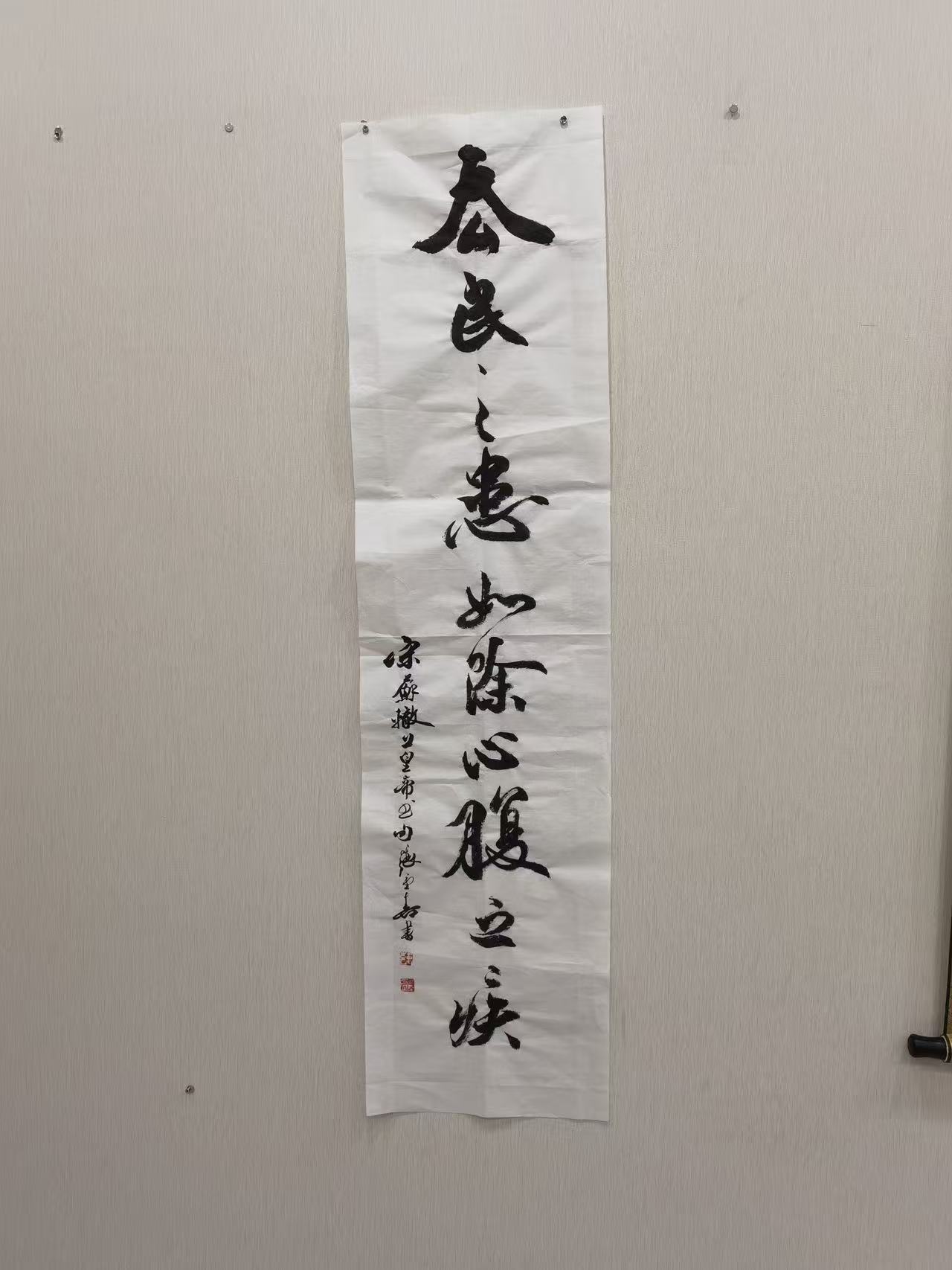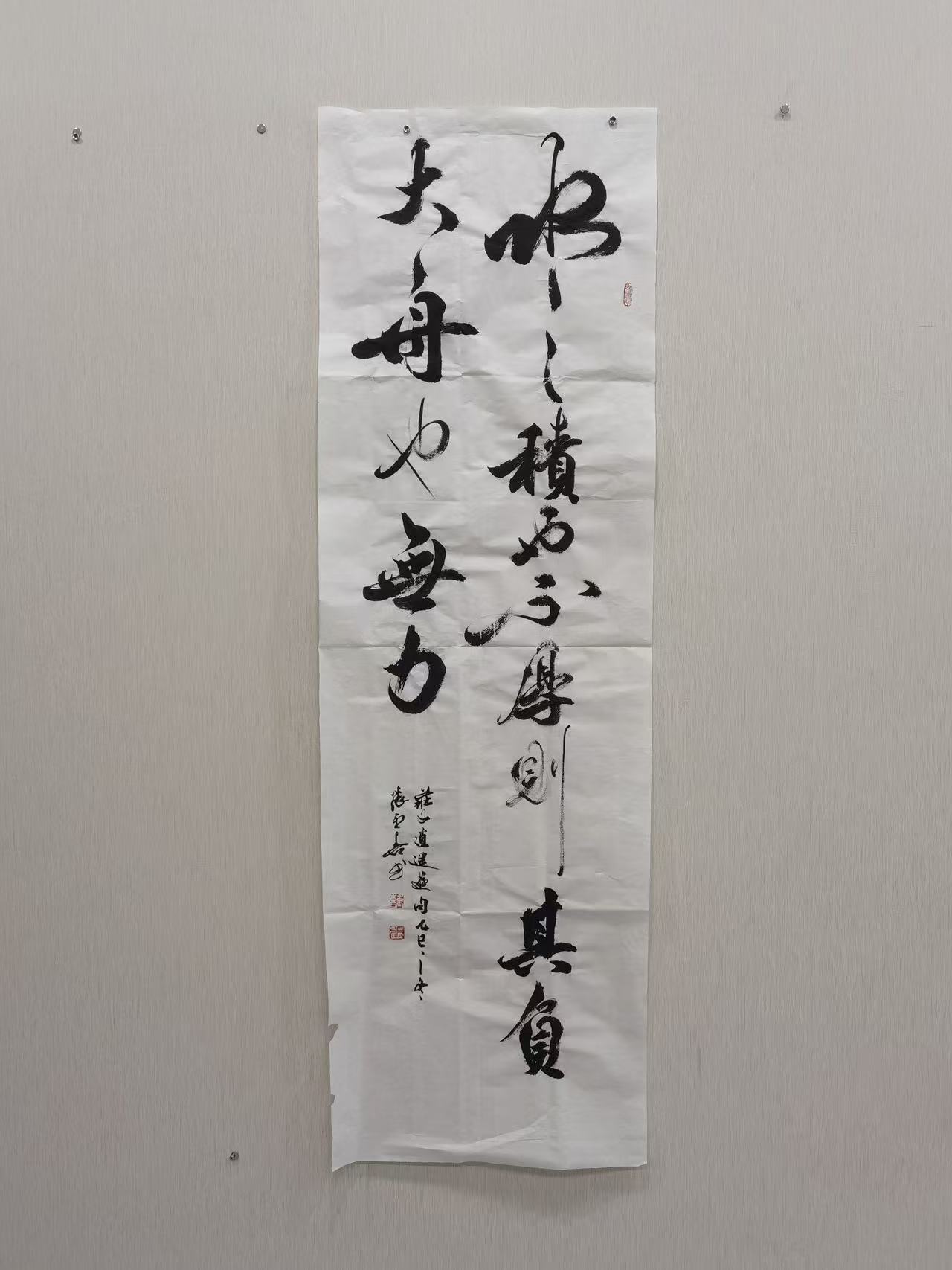 师承杨再春,悟书法精髓。他师从当代书法大家杨再春,杨再春以笔法精湛、风格刚健、兼具传统与现代著称,主张“扎根传统、关注时代、书写本心”。在师承过程中,他不仅习得扎实的笔法、墨法、章法技艺,更领悟“书法即心法、笔墨即精神”的艺术内核,学会以辩证思维看待传统与创新的关系,避免陷入摹古的窠臼或盲目创新的误区。师徒二人常探讨书法发展路径,杨再春鼓励其“博采众长、自成一家”,为其风格独立指明方向。