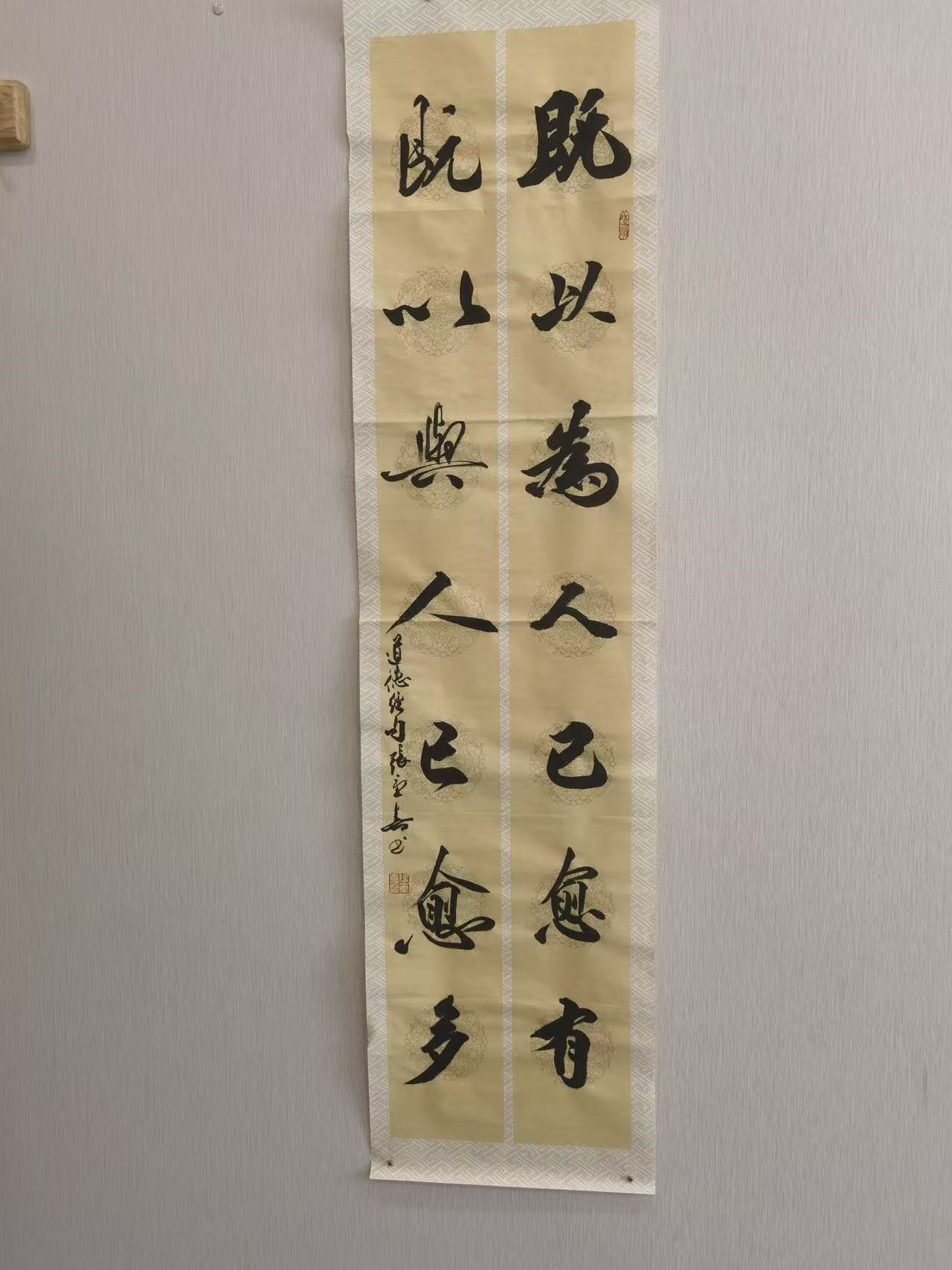 整体布局,和谐统一。根据作品形制(条幅、横幅、扇面、斗方等)与文字内容,精心规划整体布局,字距、行距疏密得当。行书、草书章法灵动多变,字距可大可小、行距可宽可窄,字与字之间牵丝映带、上下呼应,行与行之间气息贯通、左右顾盼,整体如行云流水、一气呵成;隶书章法规整严谨,字距大于行距,结体方正对称、排列整齐,尽显庄重典雅之态。