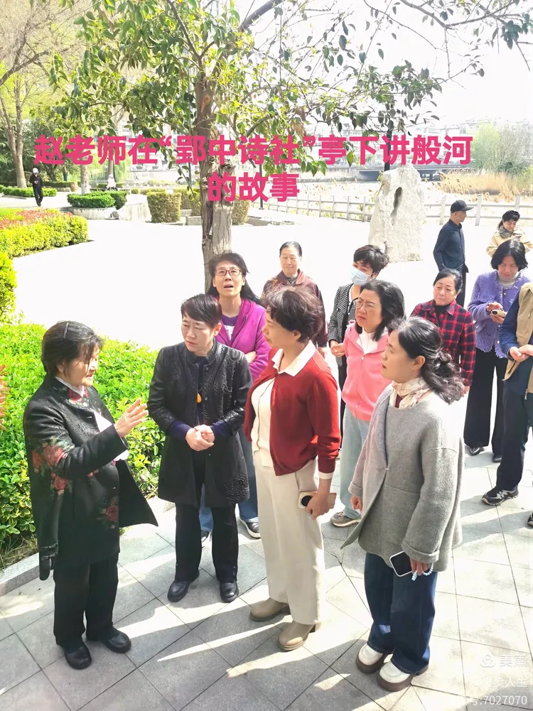 清明节来临,今天我们学习了杜牧的《清明》和蒲松龄先生的《般河》,并将两首诗词熟练地吟唱,更成为我们喜欢的曲子。丙午仲春,惠风和畅。在赵玉霞老师的引领下,我们循着蒲翁聊斋溯诗韵,用一个多小时的时间,游览了般河与孝妇河接壤留仙湖段。