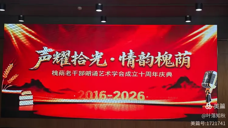 首先,让我们用最热烈的掌声,有请学会全体成员,共同带来原创作品《声耀槐荫,十载华章》,领诵:张玉佩、王雁、郭须根、李淑萍、邱昭永、李东青。这声声吟诵里,藏着十年的坚守与热忱,让我们一同启航!