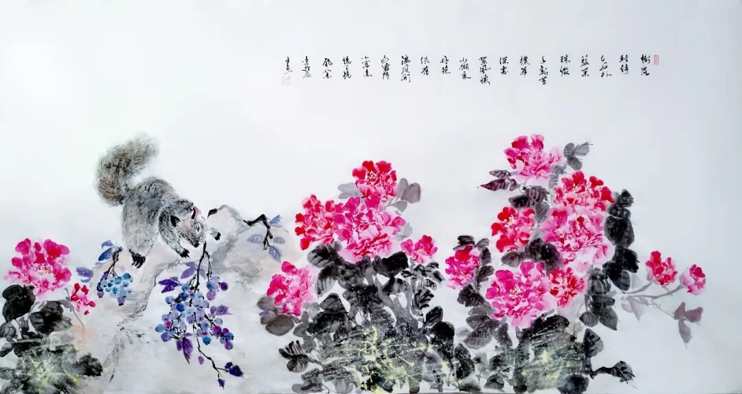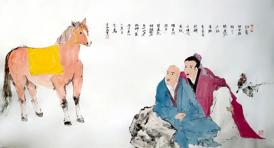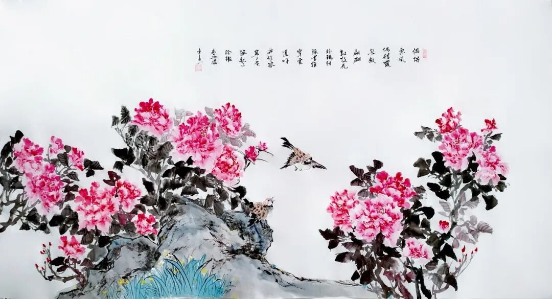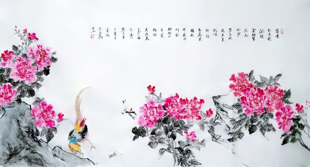 花鸟国画《忆王孙·雅集》(180*97cm)