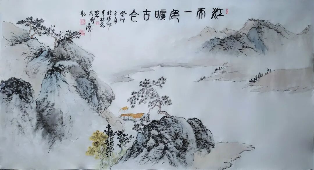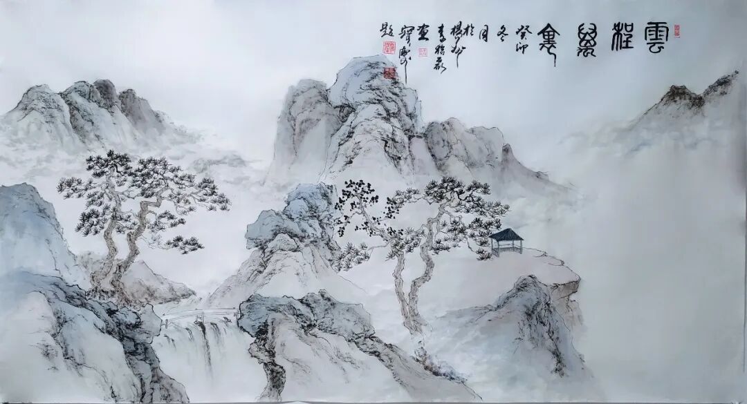 八尺全开山水系列国画《千山竞秀万里云》(248*129cm)