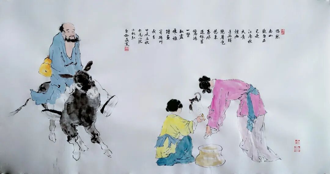 通观李拾磊的艺术,最动人处在于那份沉静的力量。无论是人物的悠然、山水的苍茫,还是花鸟的灵动,背后都有一以贯之的精神底色:不躁、不浮、不媚、不俗。她用全悉的业余时间默默耕耘,诗词五百余篇,画作无数,终以成为佳作的作品说话,赢得学界与市场的双重认可。在喧嚣的当代艺坛,这种定力本身就是一种稀缺品质。当观者站在她的作品前,会不自觉地放慢呼吸——那便是她笔墨中蕴藏的“静气”在起作用。这或许就是李拾磊国画的精神价值所在:在快节奏的时代里,为我们提供了一方让心灵和情感栖息的纸上桃源。