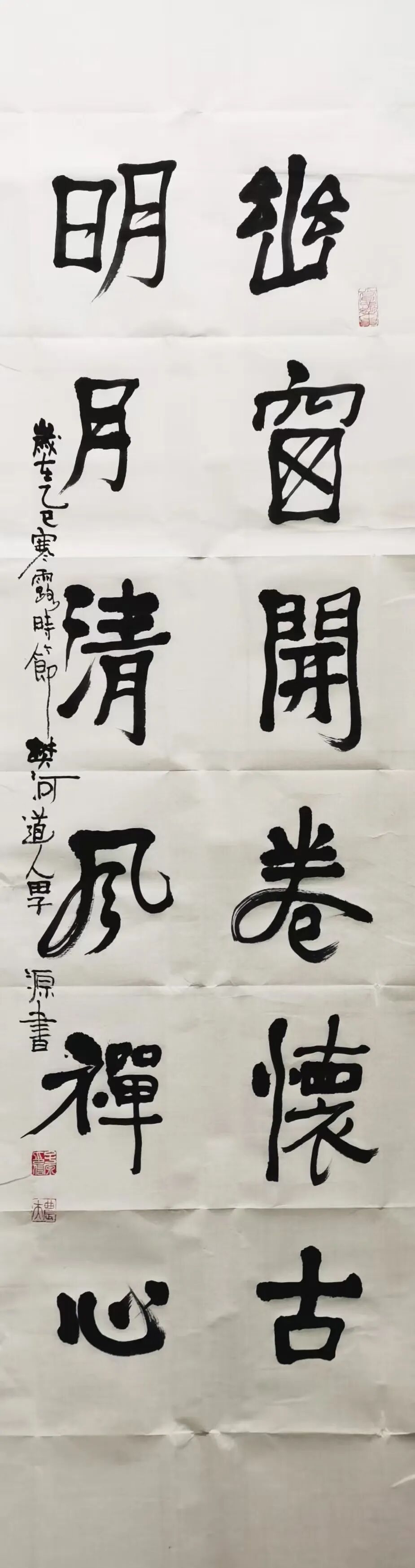 田子源书法:幽窗开卷怀古 明月清风禅心